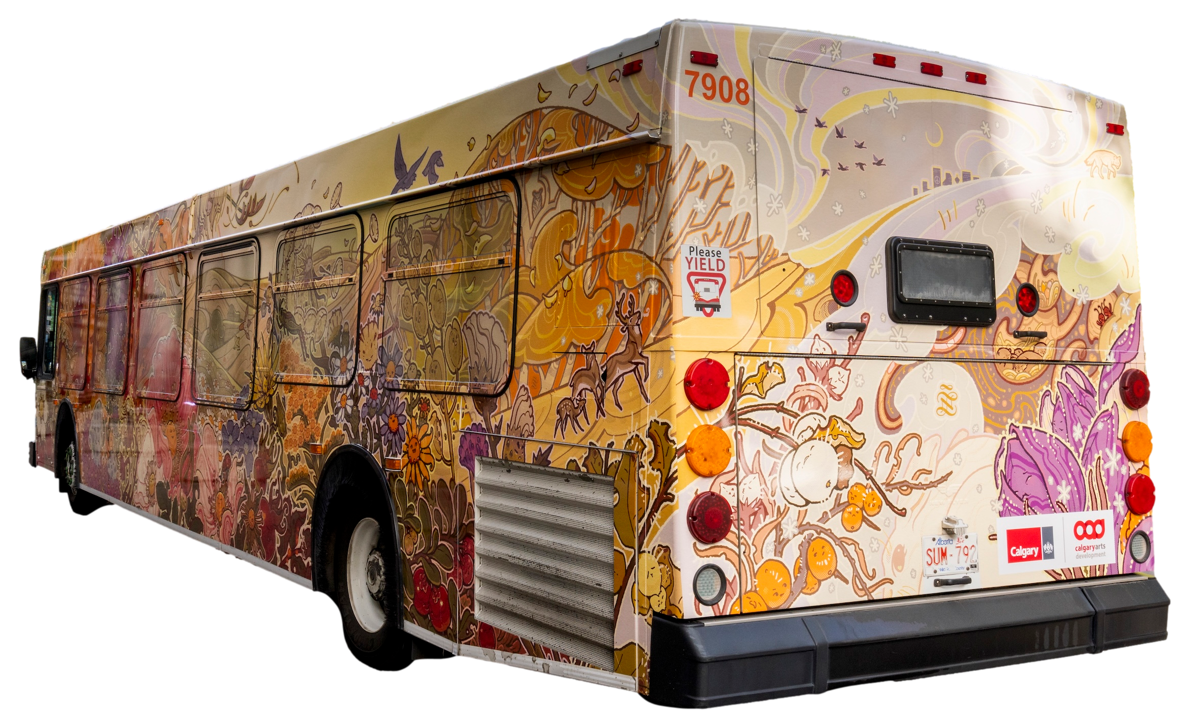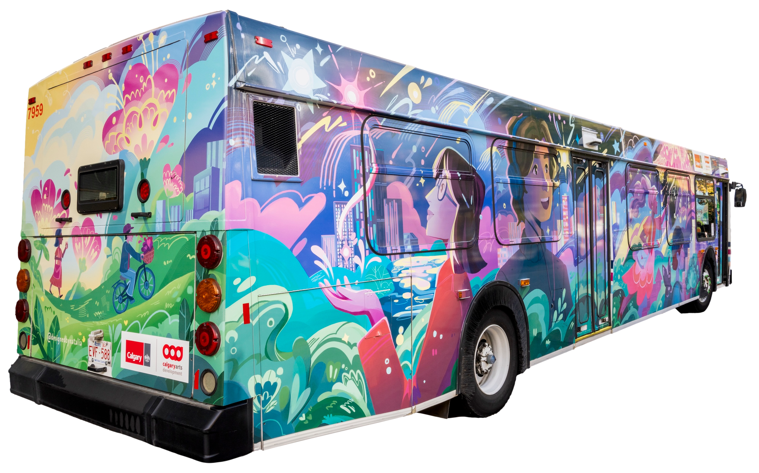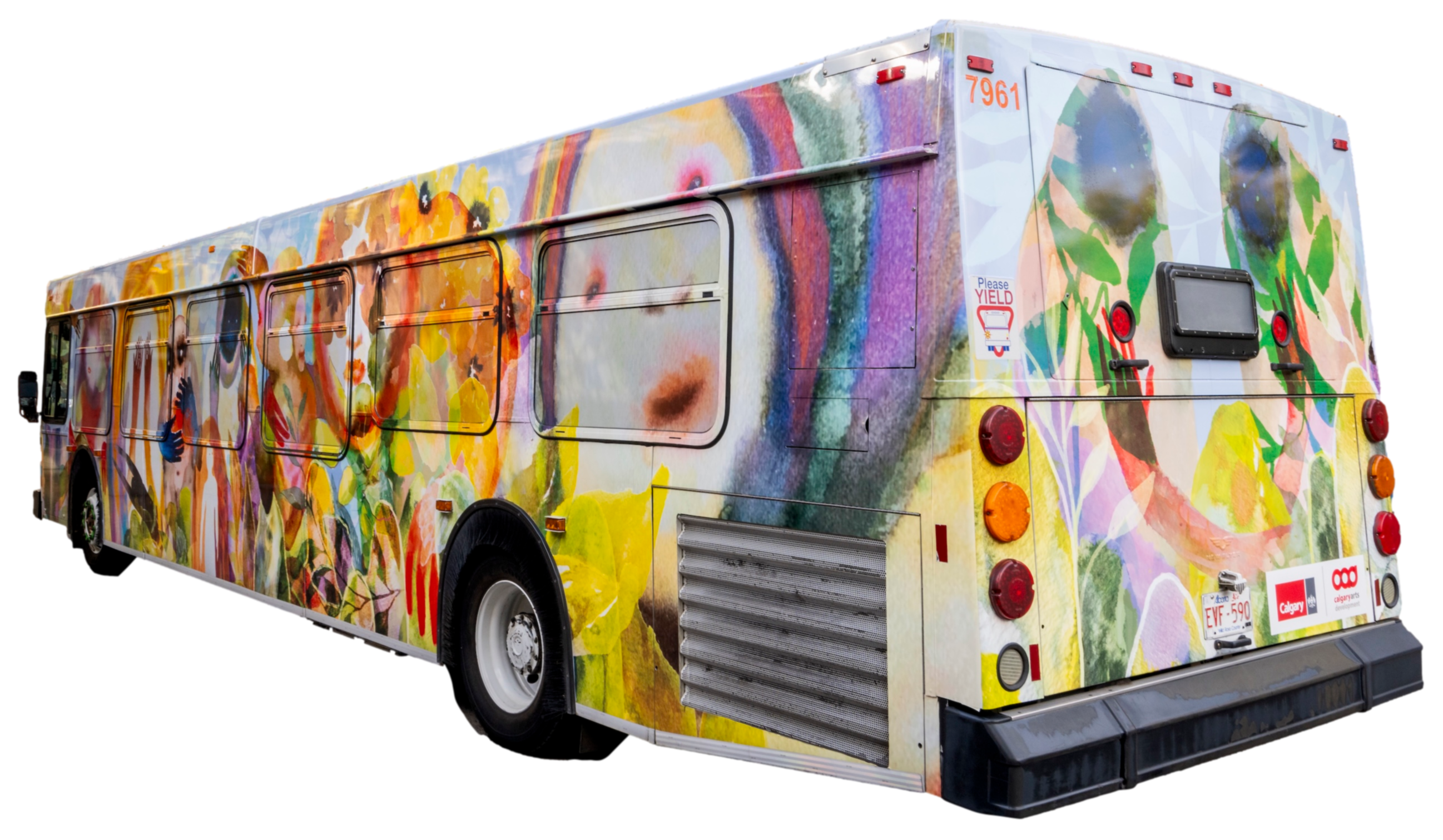 These buses will be in service for 12 weeks in the fall of 2024, and will be seen by an estimated 76 per cent of Calgarians seven times, for a total of 10.3 million impressions. In addition to the exterior bus wrapping, panels on the inside of the bus will share information about the artist and show some of their pre-existing artworks.