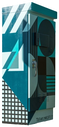 A grid of colourful imagery created by Priscilla Cherry and Tyson Bankert adorns this Utility Box, bringing colour and vibrancy to the area.