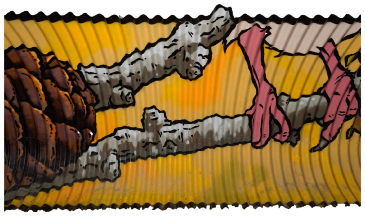 These spray painted murals can be found in the pedestrian underpass in Confederation park and are a visual response to a poem written by Calgary-based Metis poet Cobra Collins.