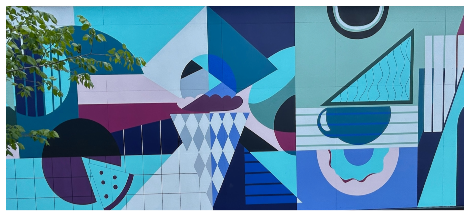 The artist was inspired by the wall having such a unique shape that resembled the mountains, which was a jumping-off point for this muralMural