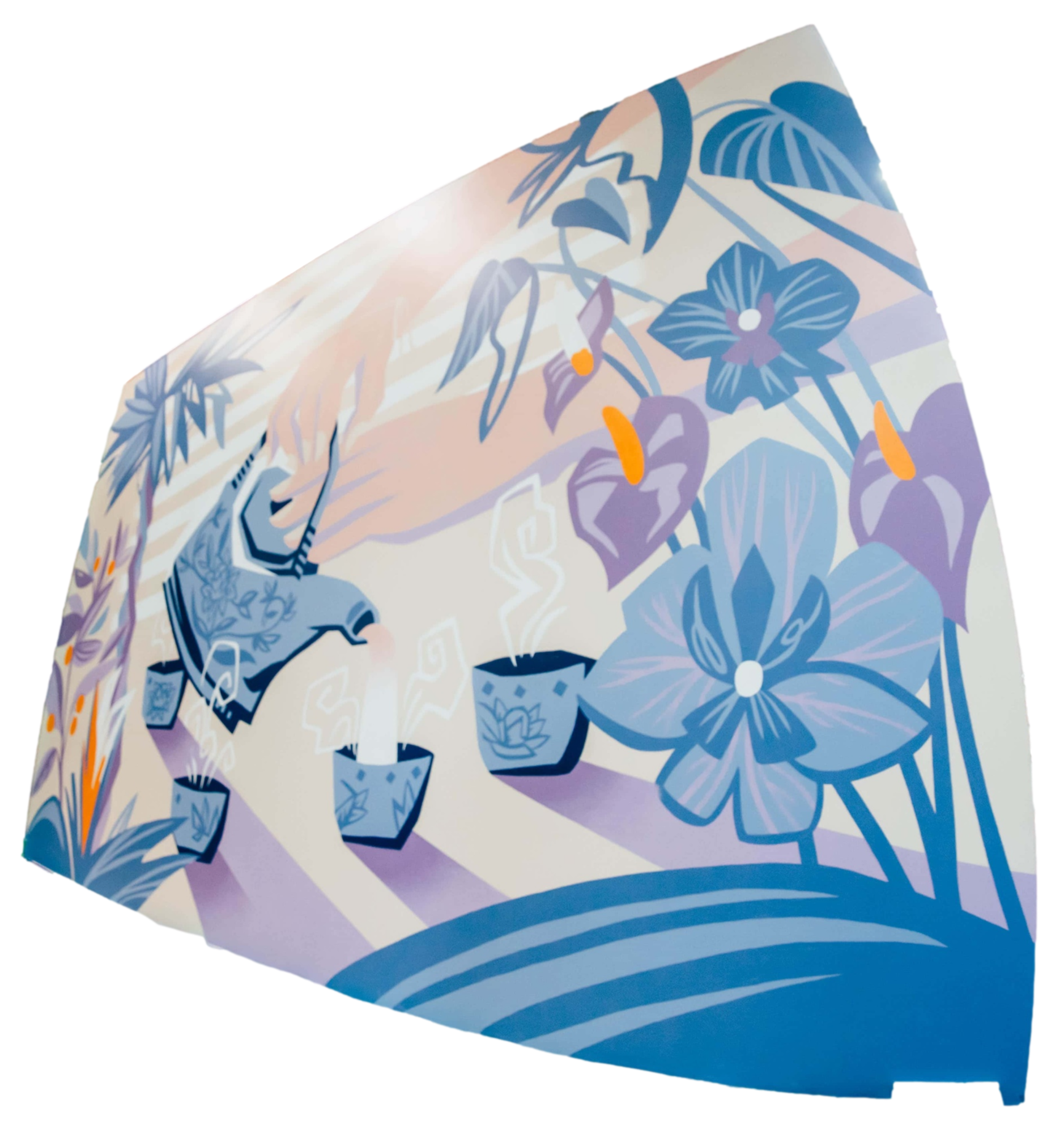 Referencing classical ceramic forms, ornamental and pop cultural symbols, and combined with abstract painterly mark making, the mural provides a pluralistic vision indicative of our individual and shared experiences.Mural