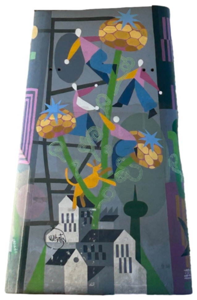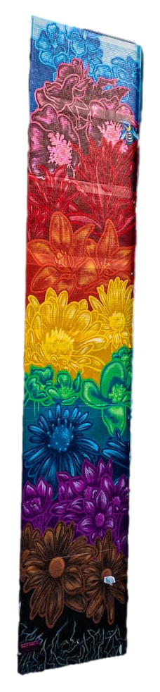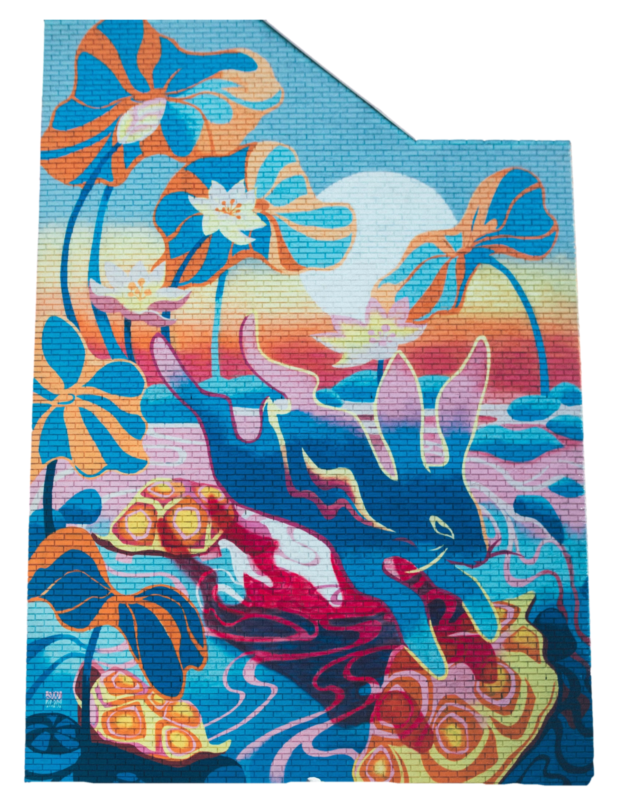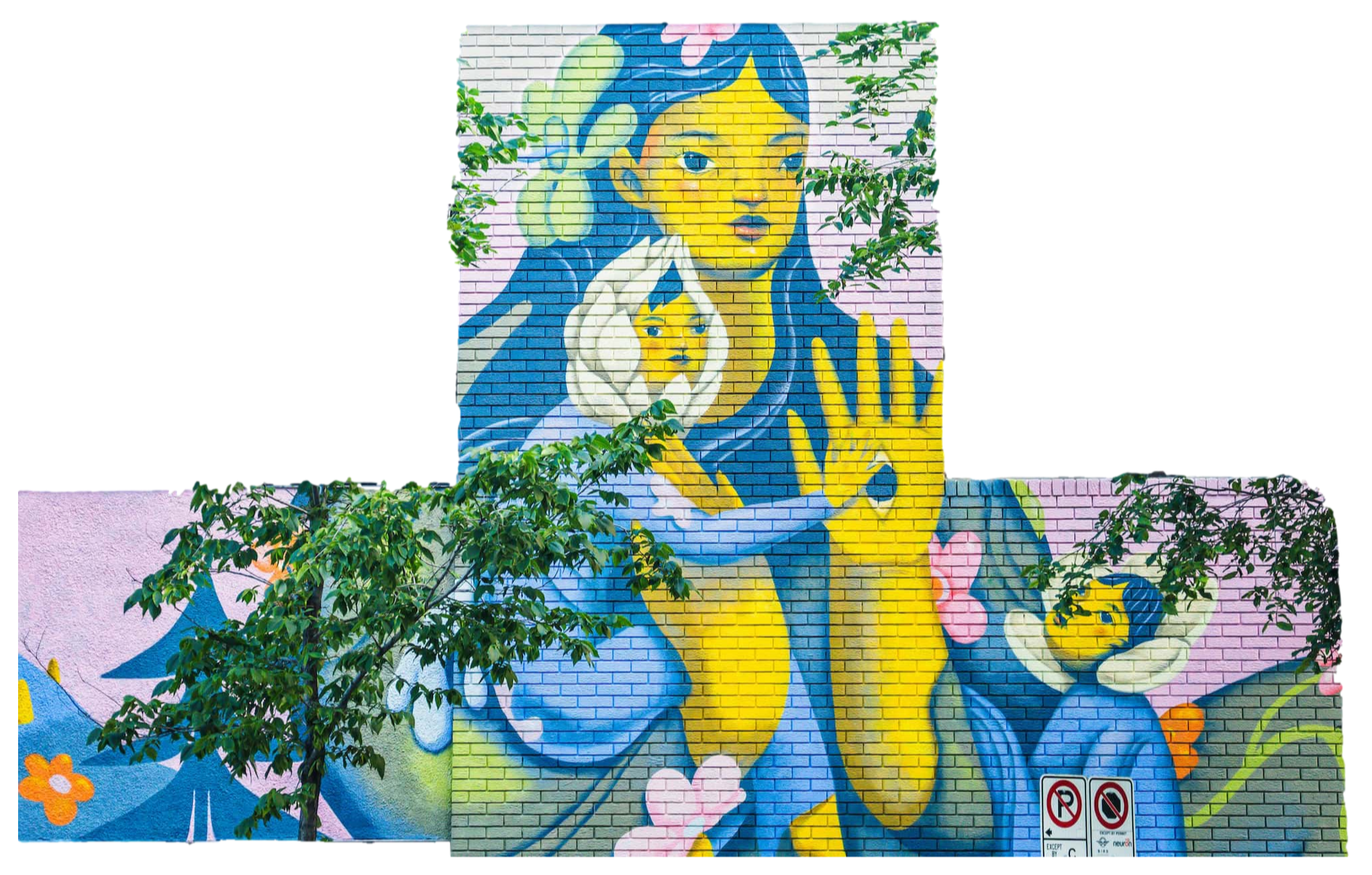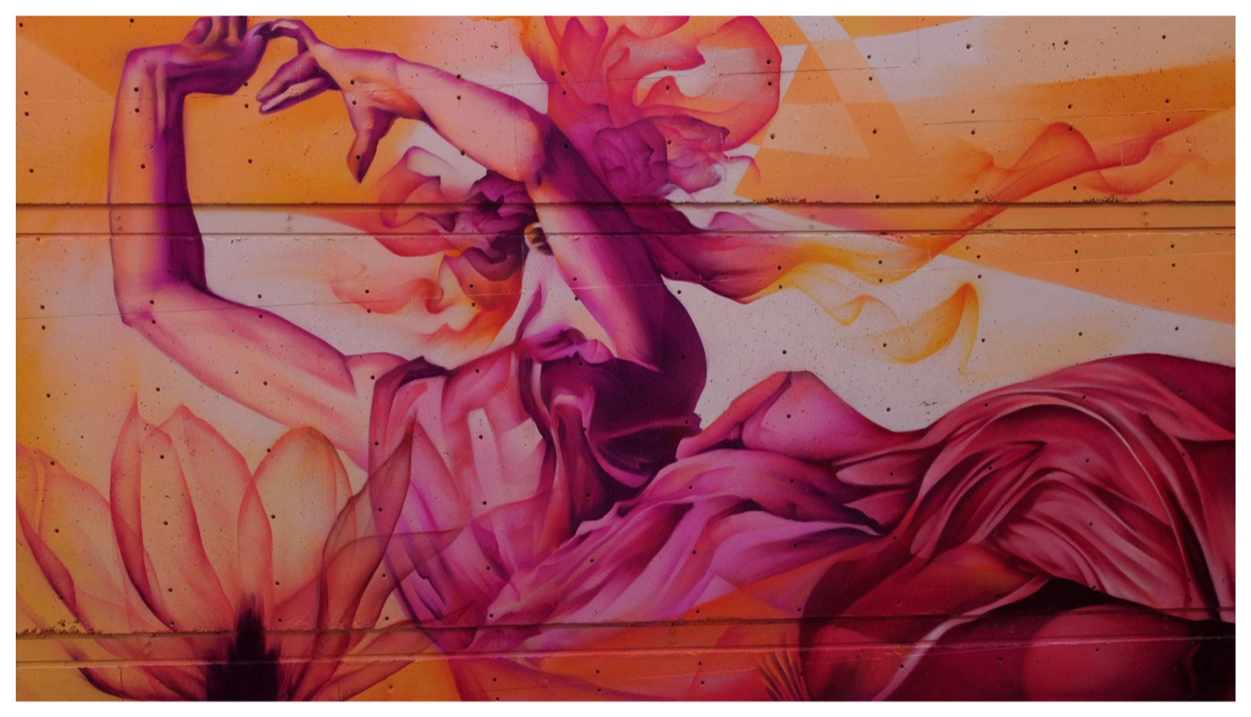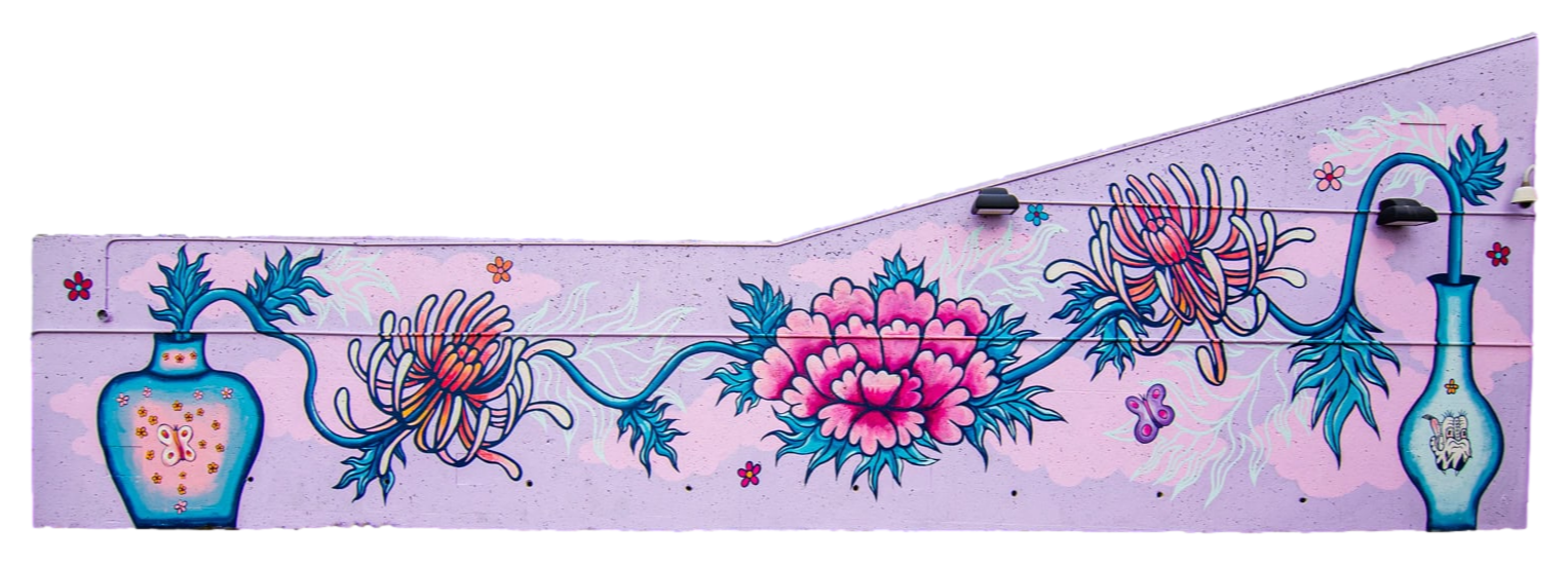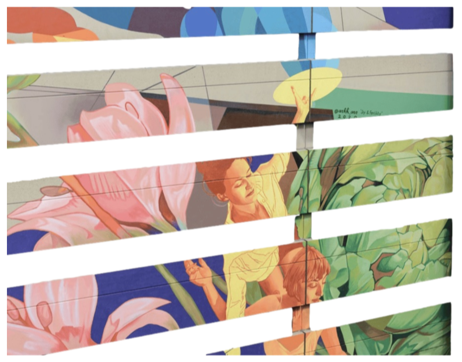 Drawing inspiration from graffiti, calligraphy, impressionism, and natural forms, the artists skillfully blend these influences into an uplifting mixed-media mural.Mural