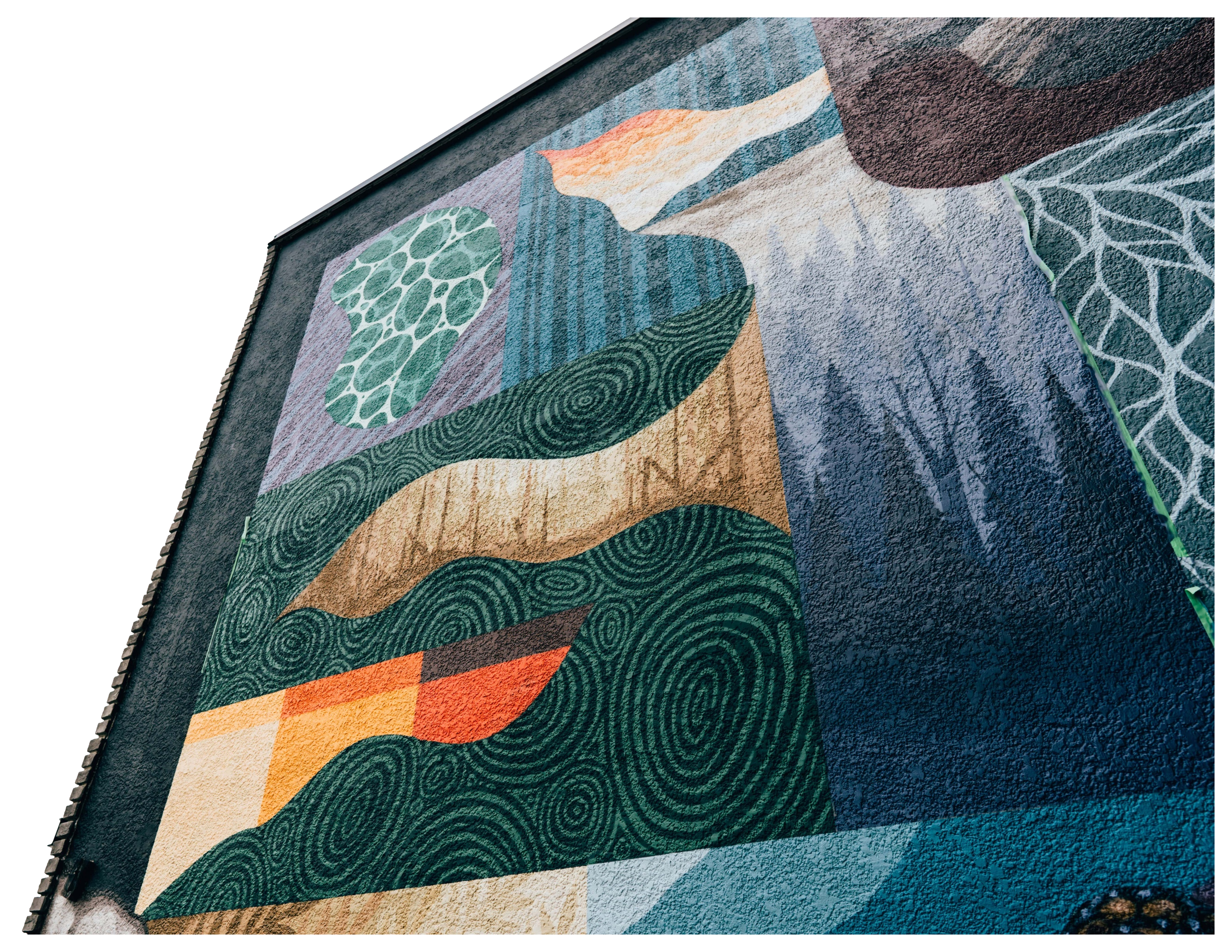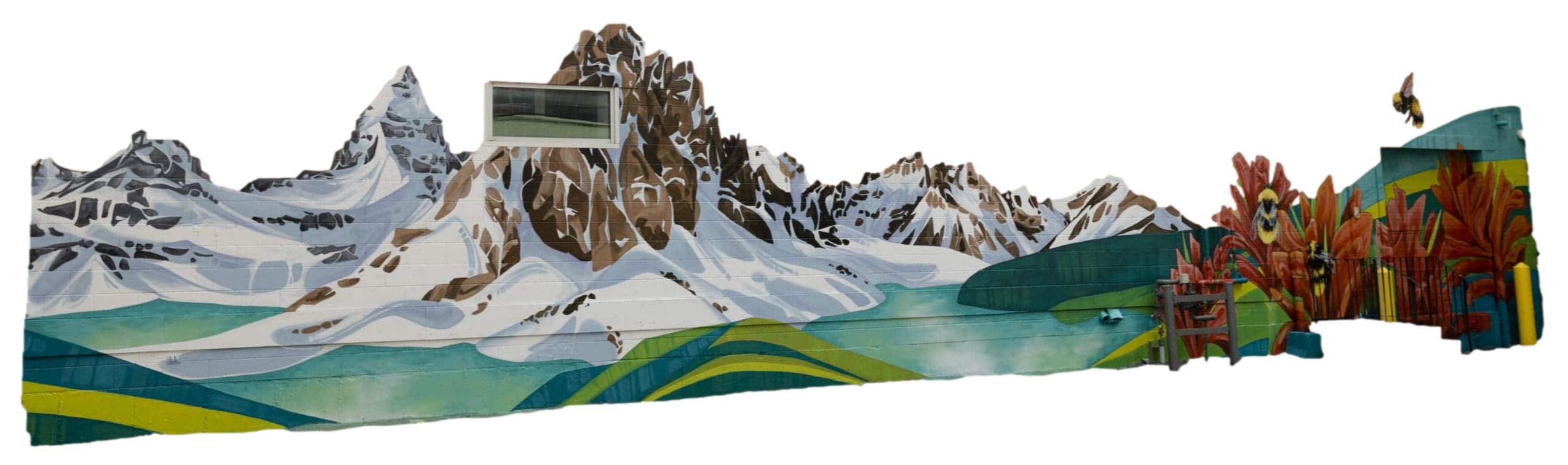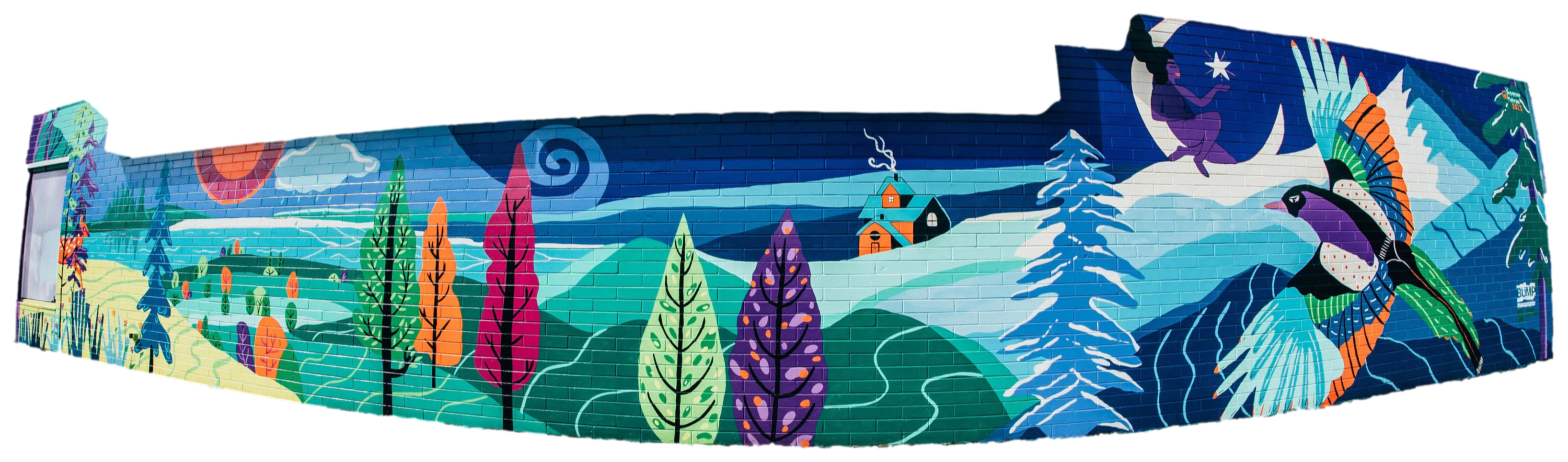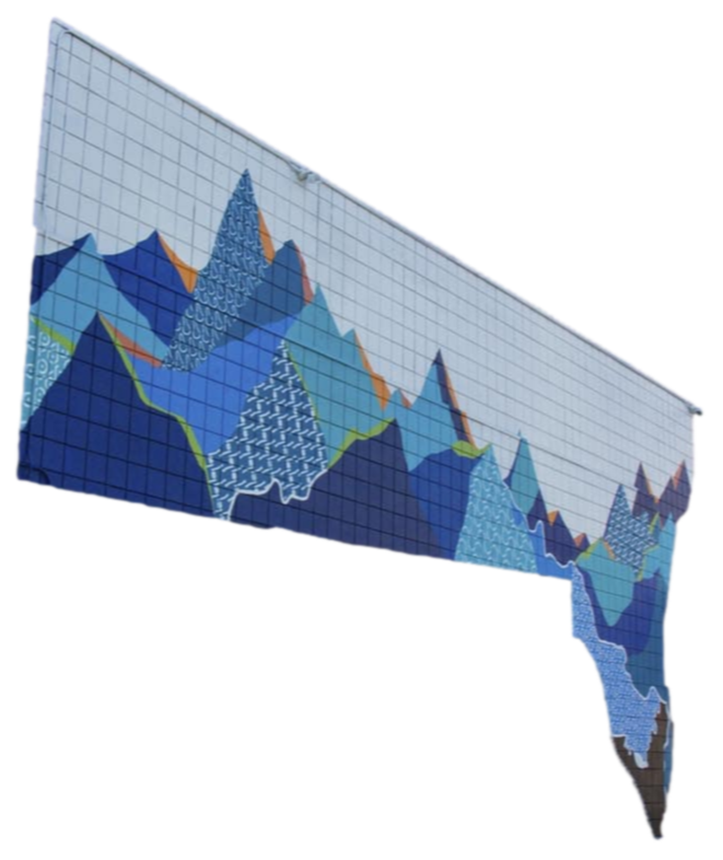 The artist was inspired by the wall having such a unique shape that resembled the mountains, which was a jumping-off point for this muralMural
