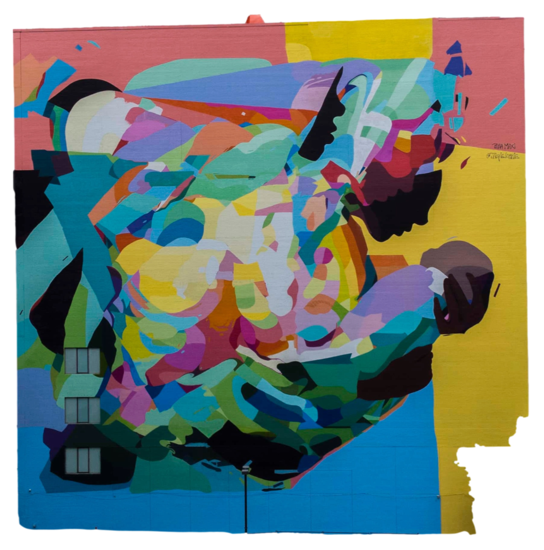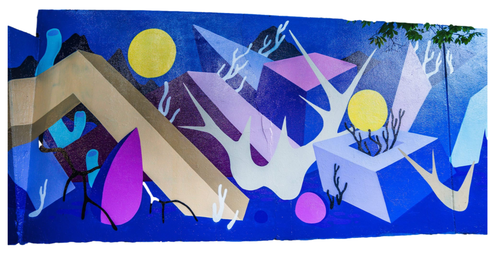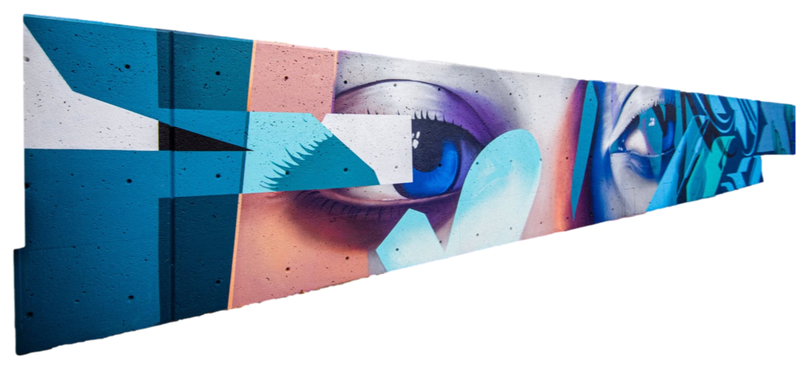 The artist was inspired by the wall having such a unique shape that resembled the mountains, which was a jumping-off point for this muralMural
