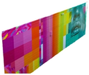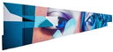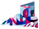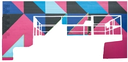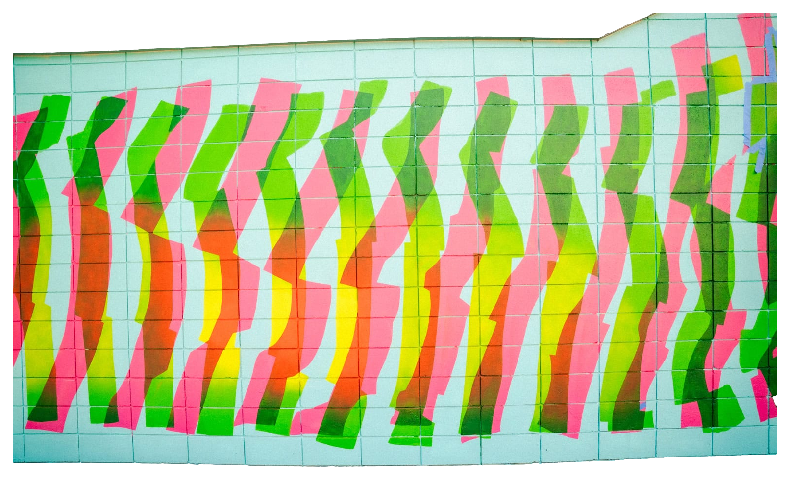 Electric blues, greens, pinks, and oranges tether the mural to its digital inspirations.Mural