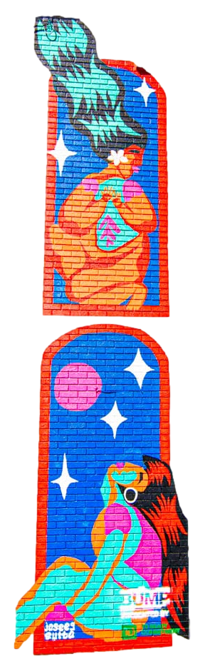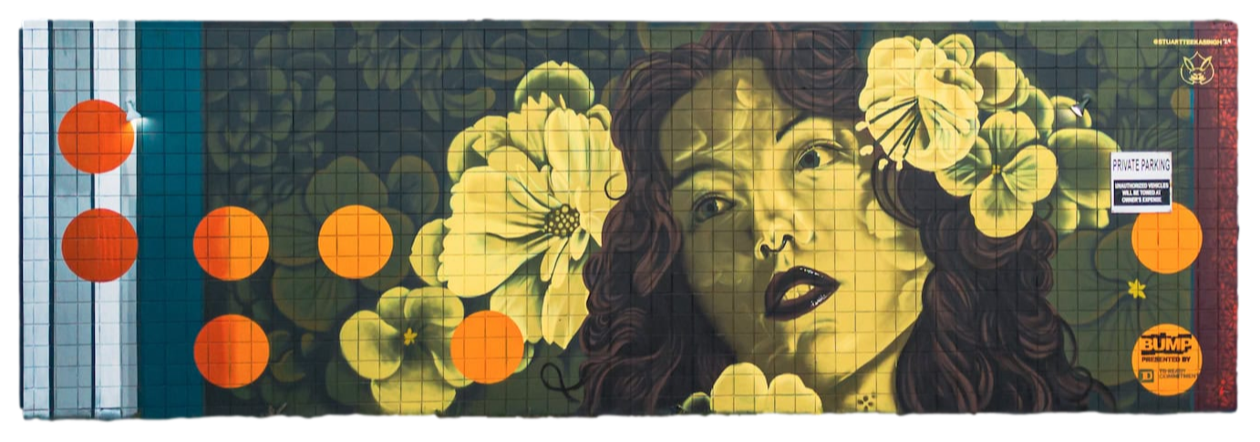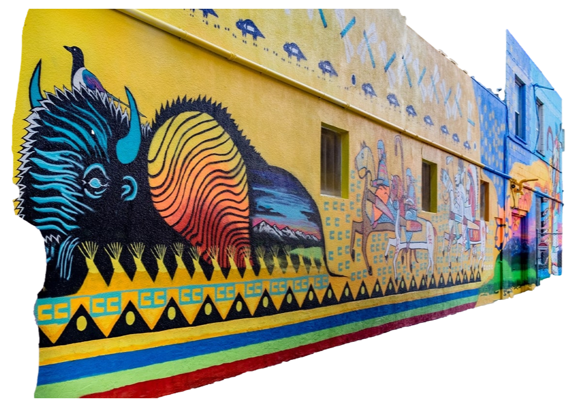 Annually, a jury of diverse perspectives selects local, national, and international artists to bring new works to life through muralism, graffiti, and unique installations, creating a dynamic visual landscape across the city. In 2024, BUMP commissioned 83 unique artworks, expanding our impact to over 360 installations that weave narratives of place, identity, and possibility into Calgary’s public realm.