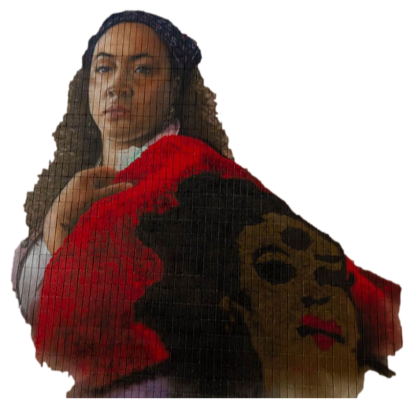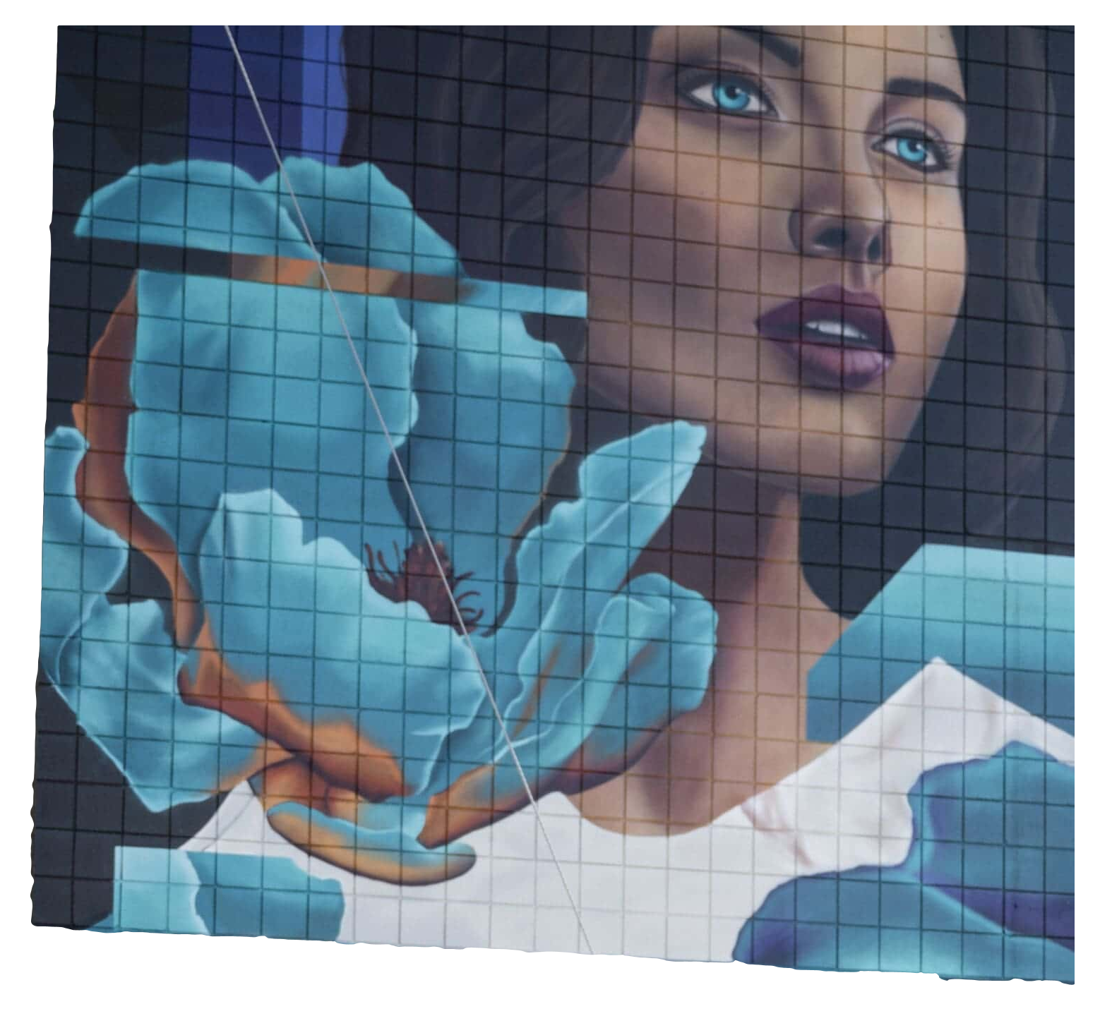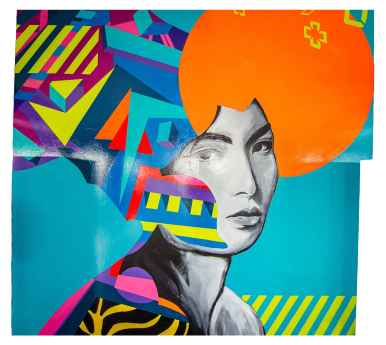 The overall composition plays off of the form of Da Vinci’s Mona Lisa with a modern subject.Mural