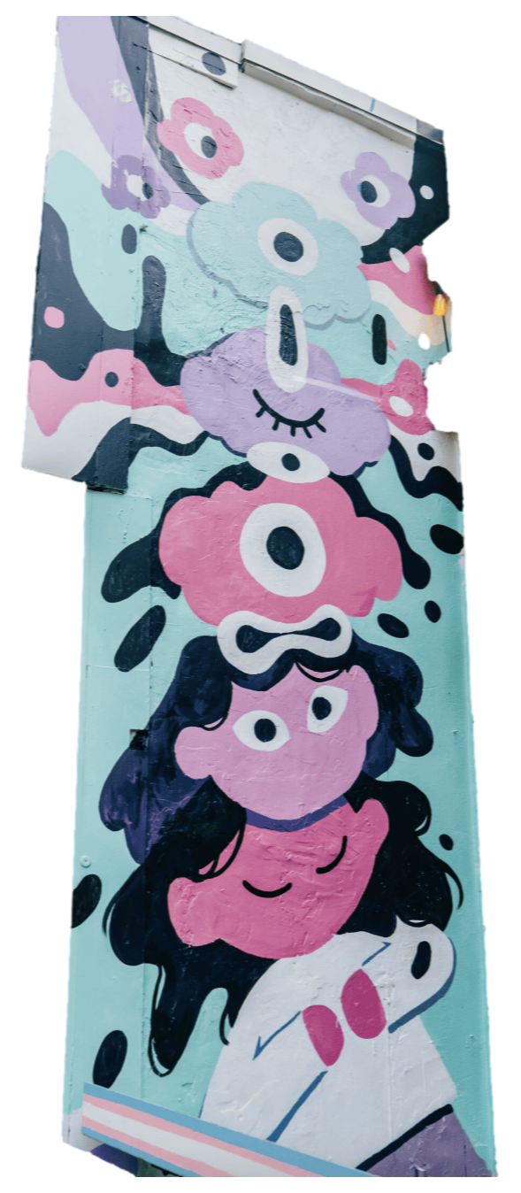 With this mural, the artist wants to celebrate the courage and resilience of the 2SLGBTQIA+ community at a time when divisive politics are threatening to take hold of our province.Mural