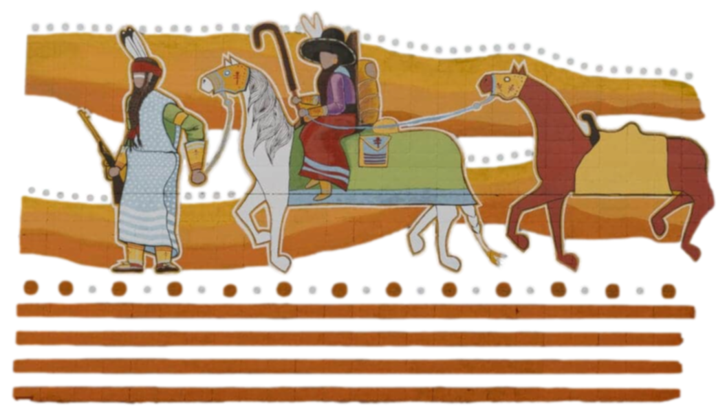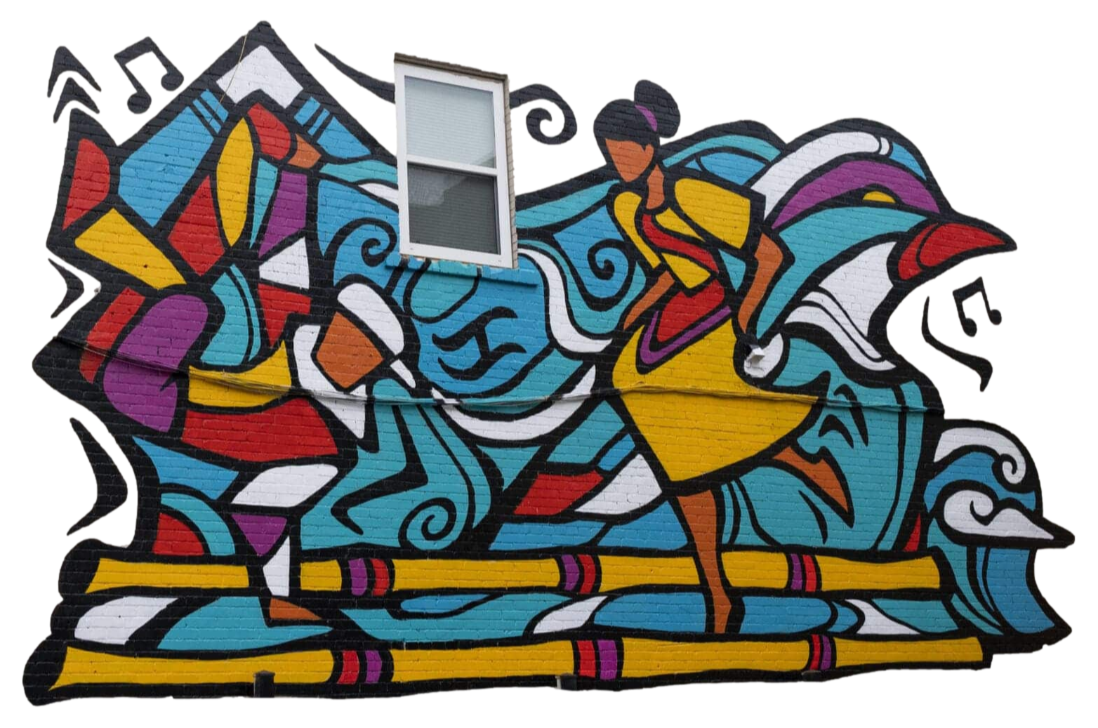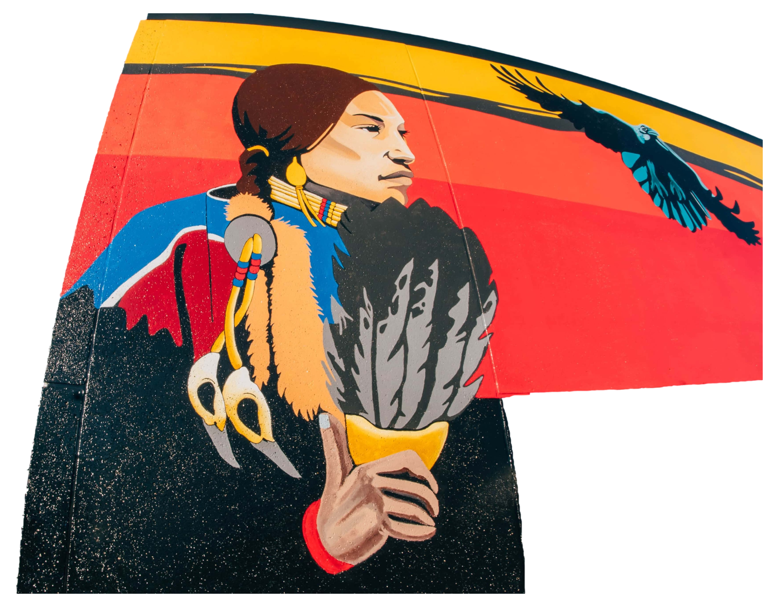 The design represents a healthy, co-operative relationship between the Native culture and the community.Mural