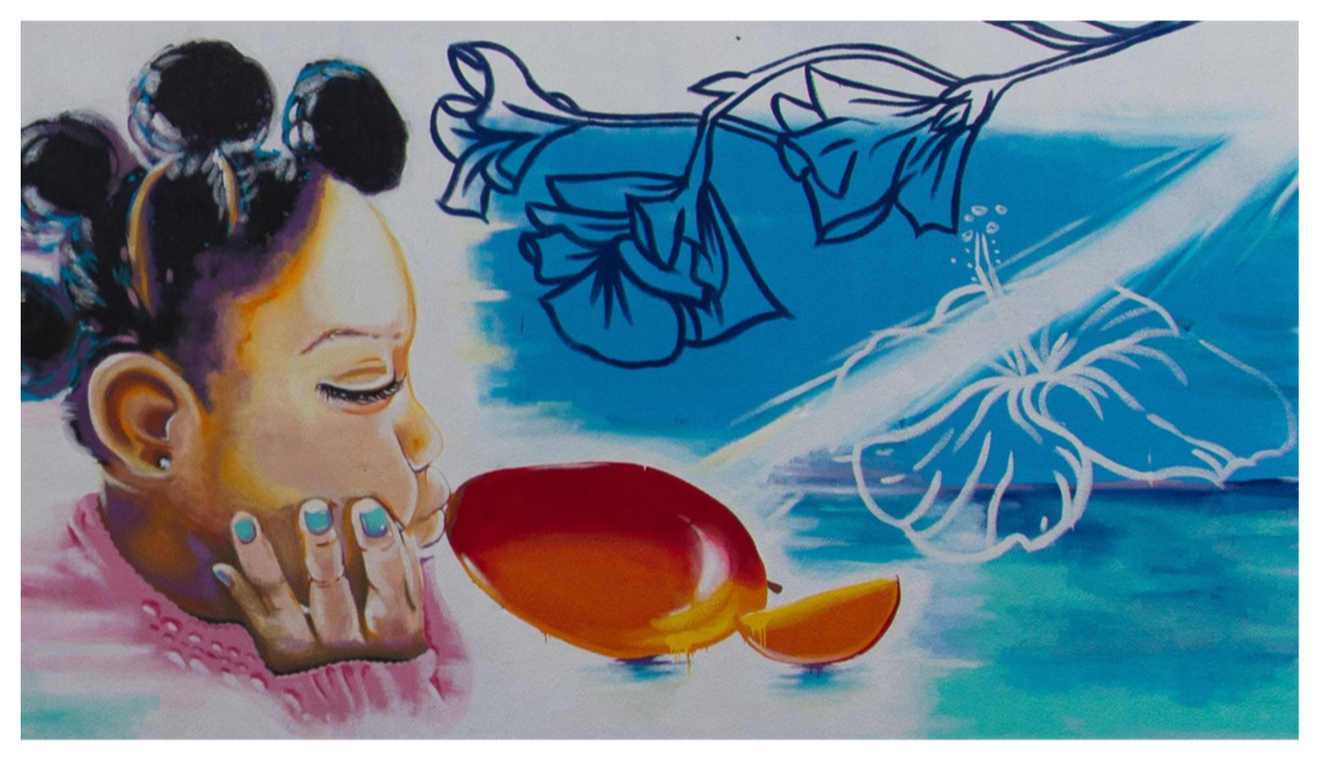 The concept of this work is about memory, healing, and tea as medicines, from the artist's childhood.Mural