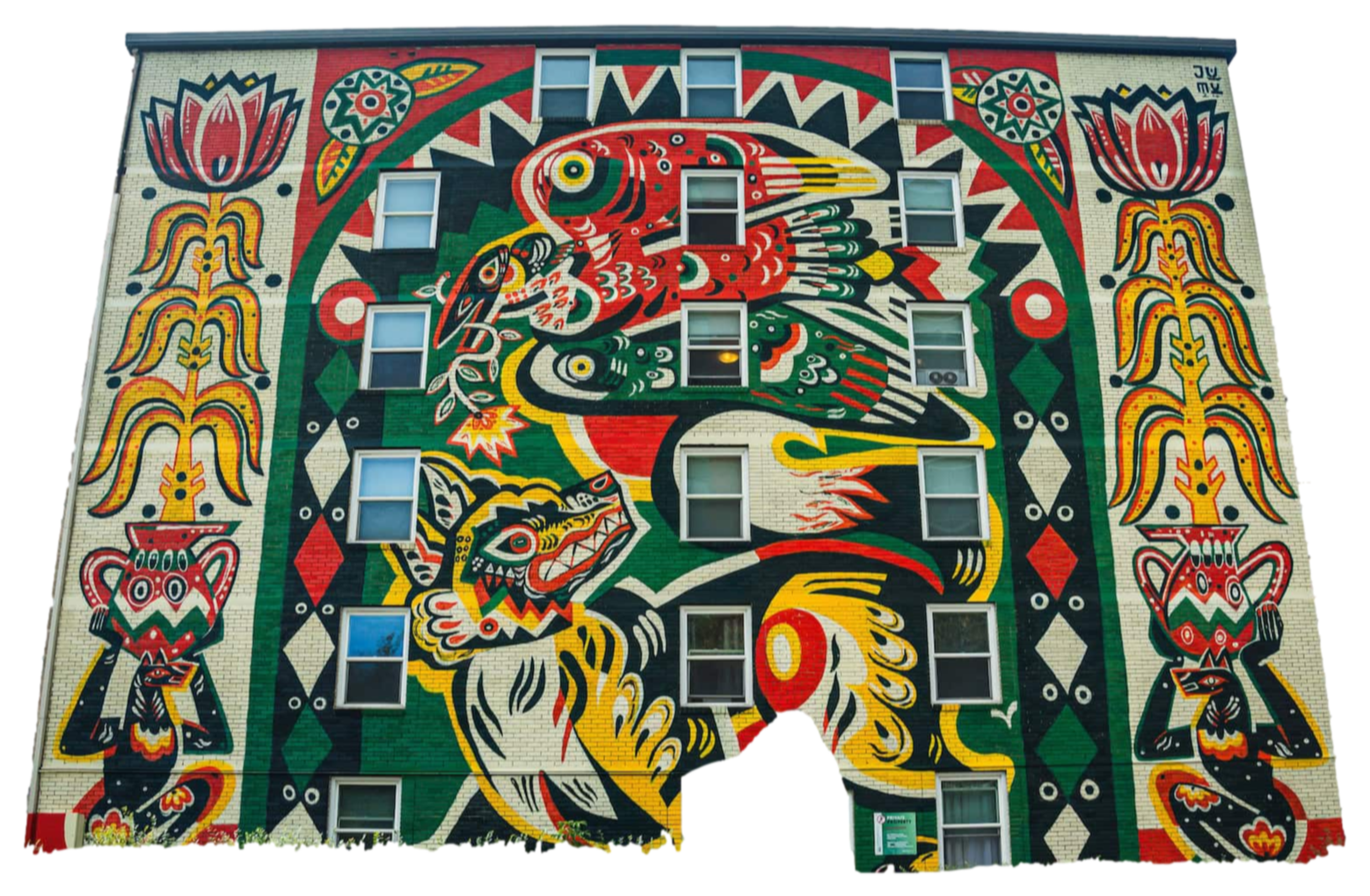 The artist's hope is to connect people with this Mural through its folkloric aesthetics, as folklore itself is a universal visual language.Mural