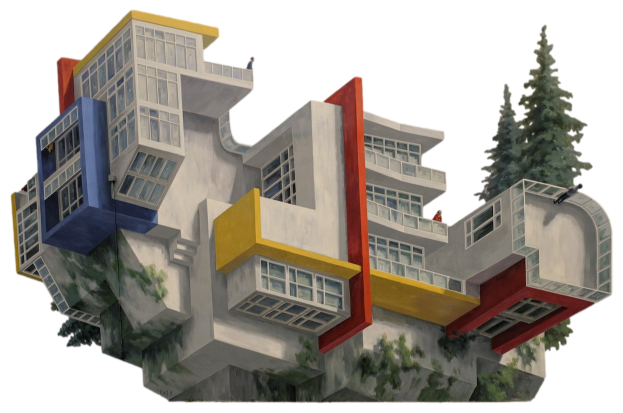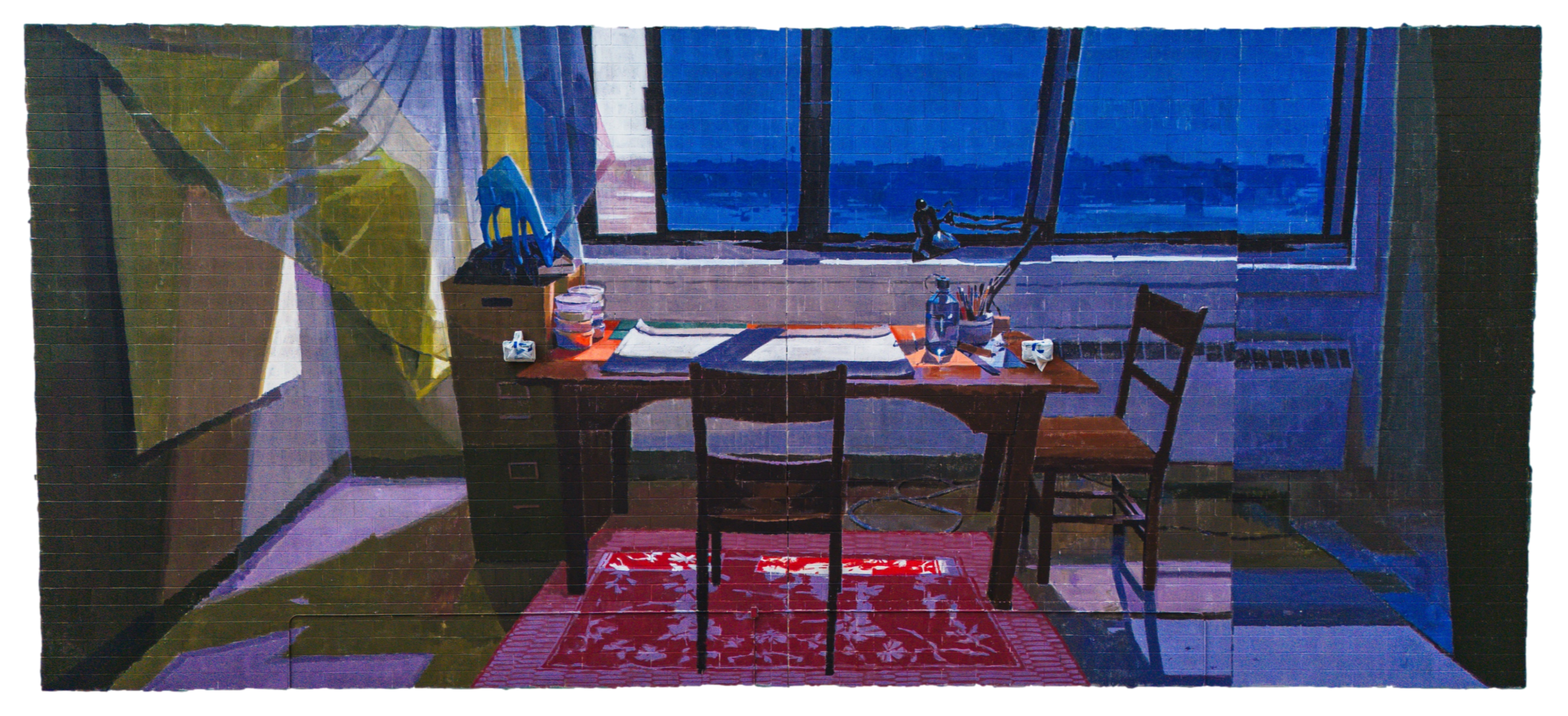 The artist sought not to represent the human in the figurative sense, but viewers can still feel his presence by the arrangement of the places and objects.Mural