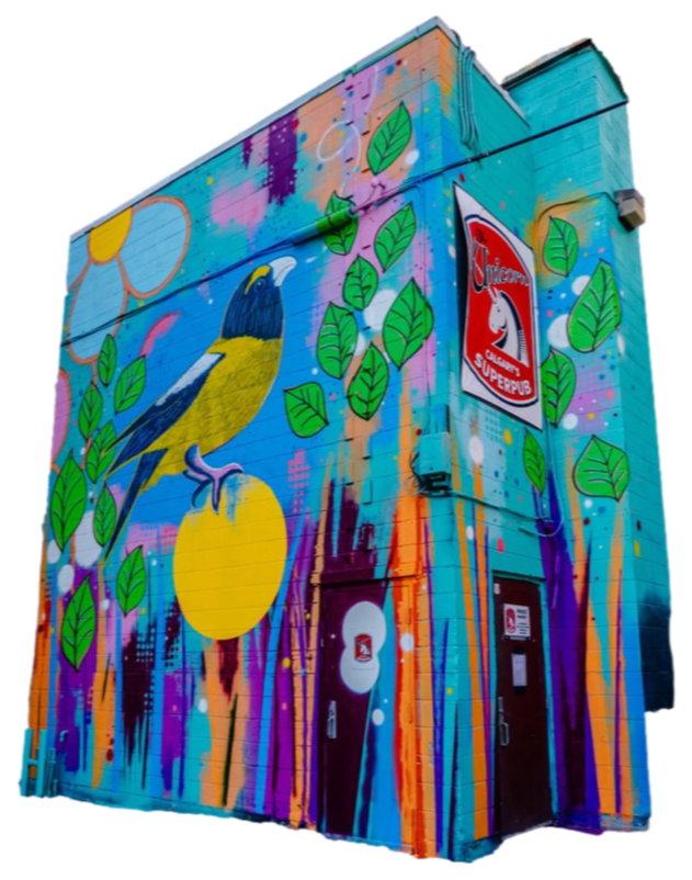 This mural brings attention to and celebrates the Calgary businesses as well as the people that make a community unique.Mural