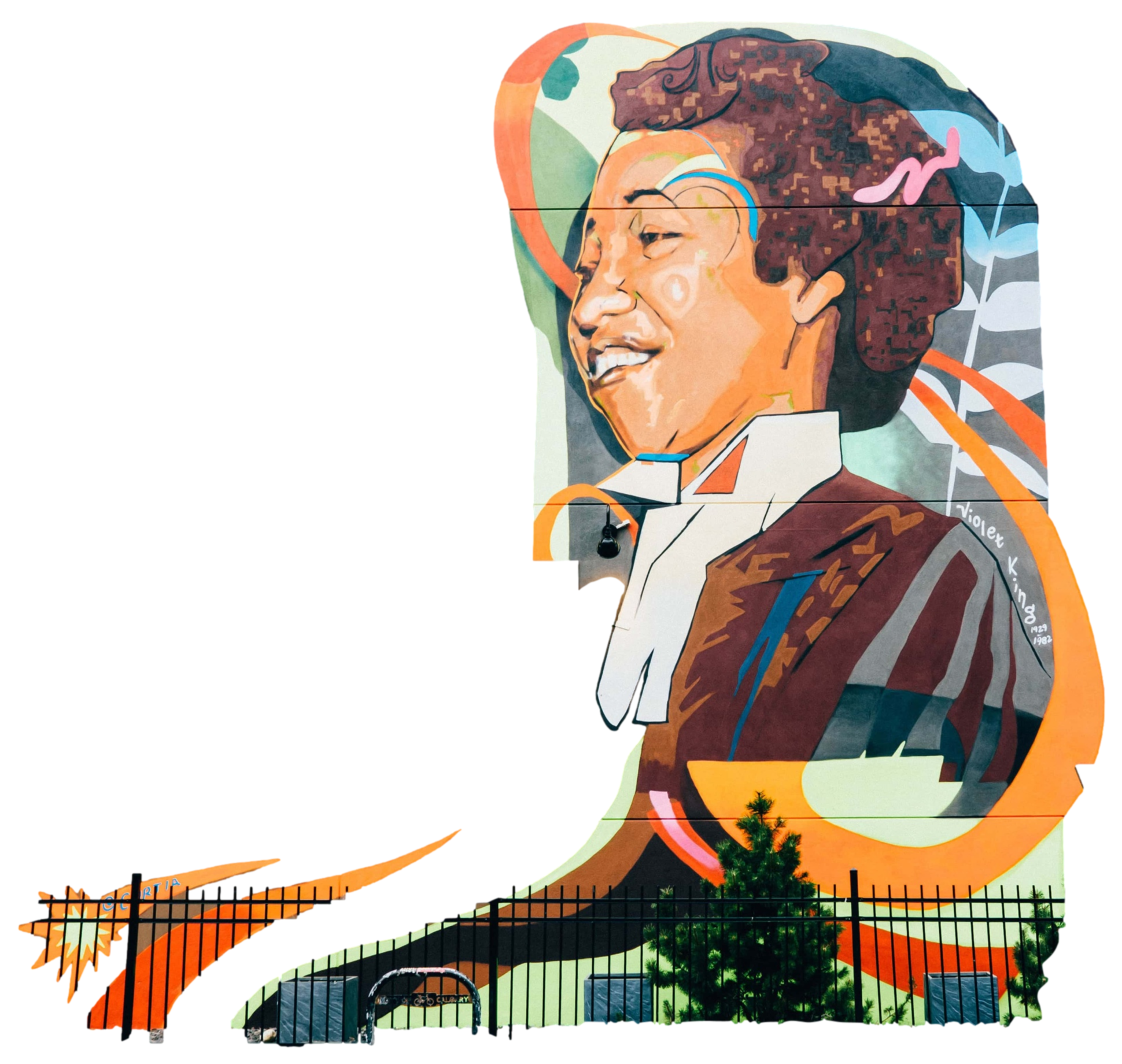 This mural's design is based on the first Black woman lawyer in Canada, Violet King.Mural