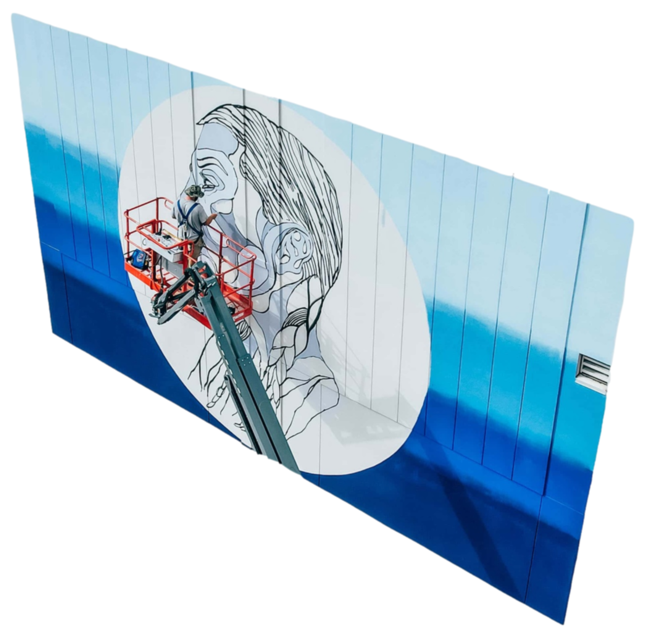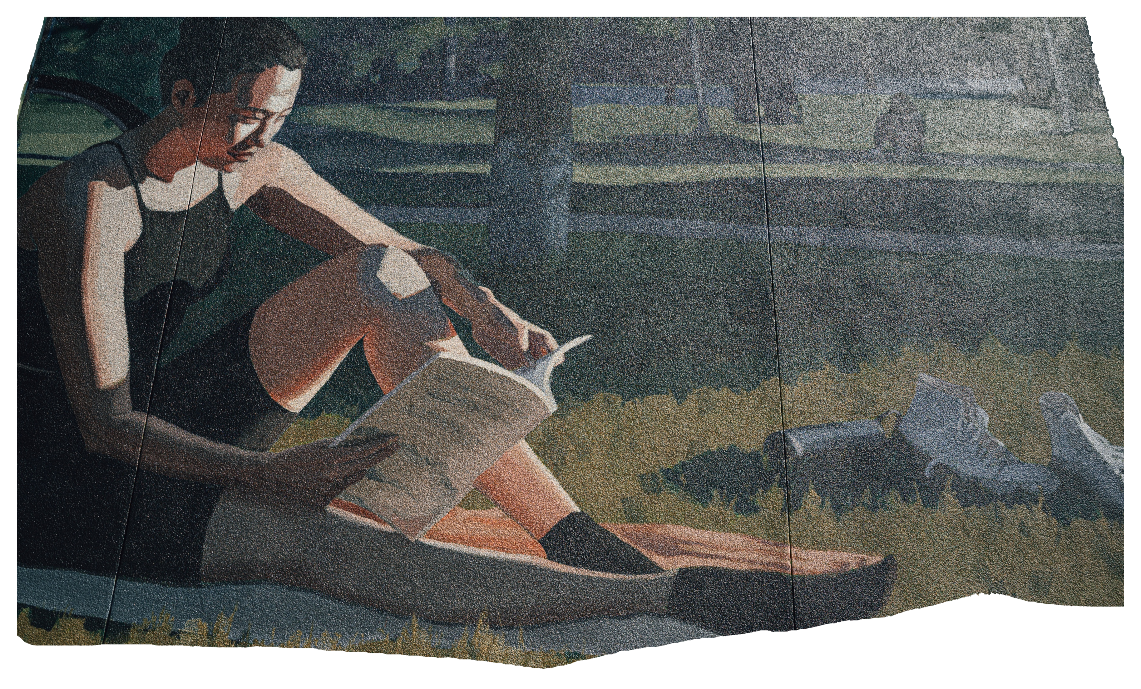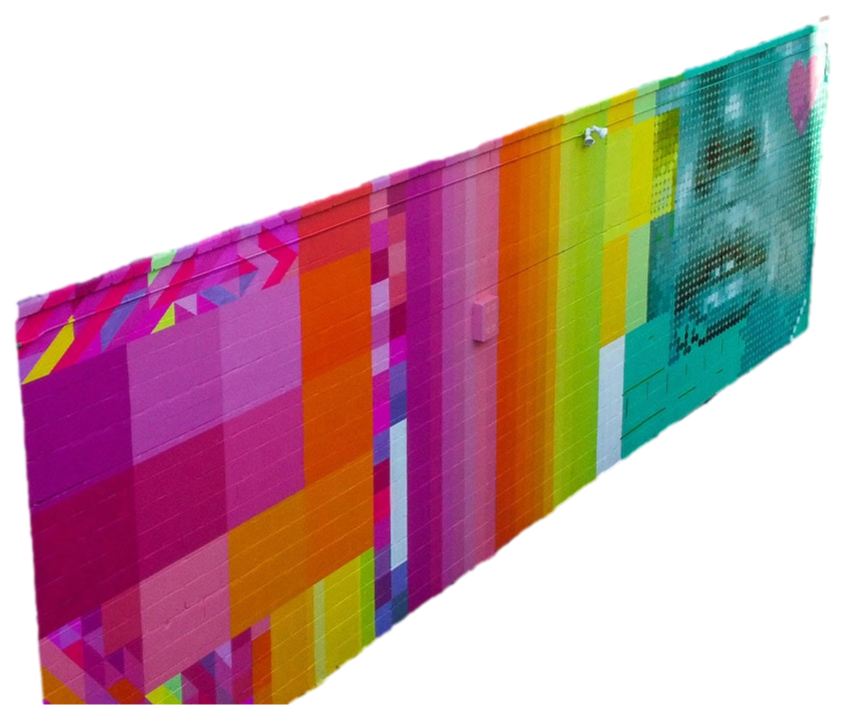 By portraying a young woman sprawled across the grass reading alongside her bike, this work romanticizes a simple moment in time, and champions the beauty of individualism.Mural