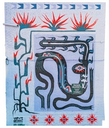 Through colors and patterns, the mural transitions from the colder winter and early spring to the brief but warm summer months, and then back to winter.Mural