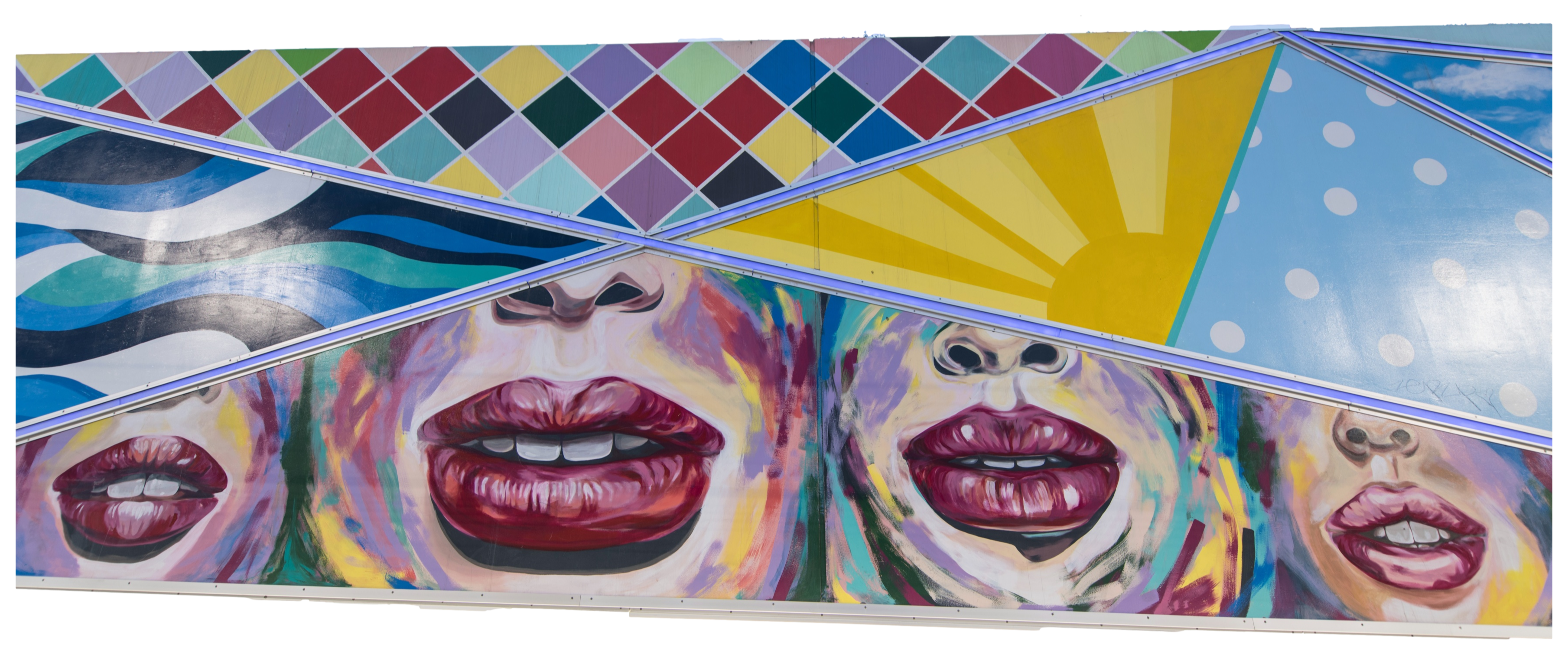 A mural that took 14 days to paint, Pandora’s Snail looks like a page from a timeless storybook you could get lost in. Rich blues and pink adorn the cerebral clowns on Kayla’s canvas, between whom sits an ancient snail. What secret’s loom inside this snail?Mural