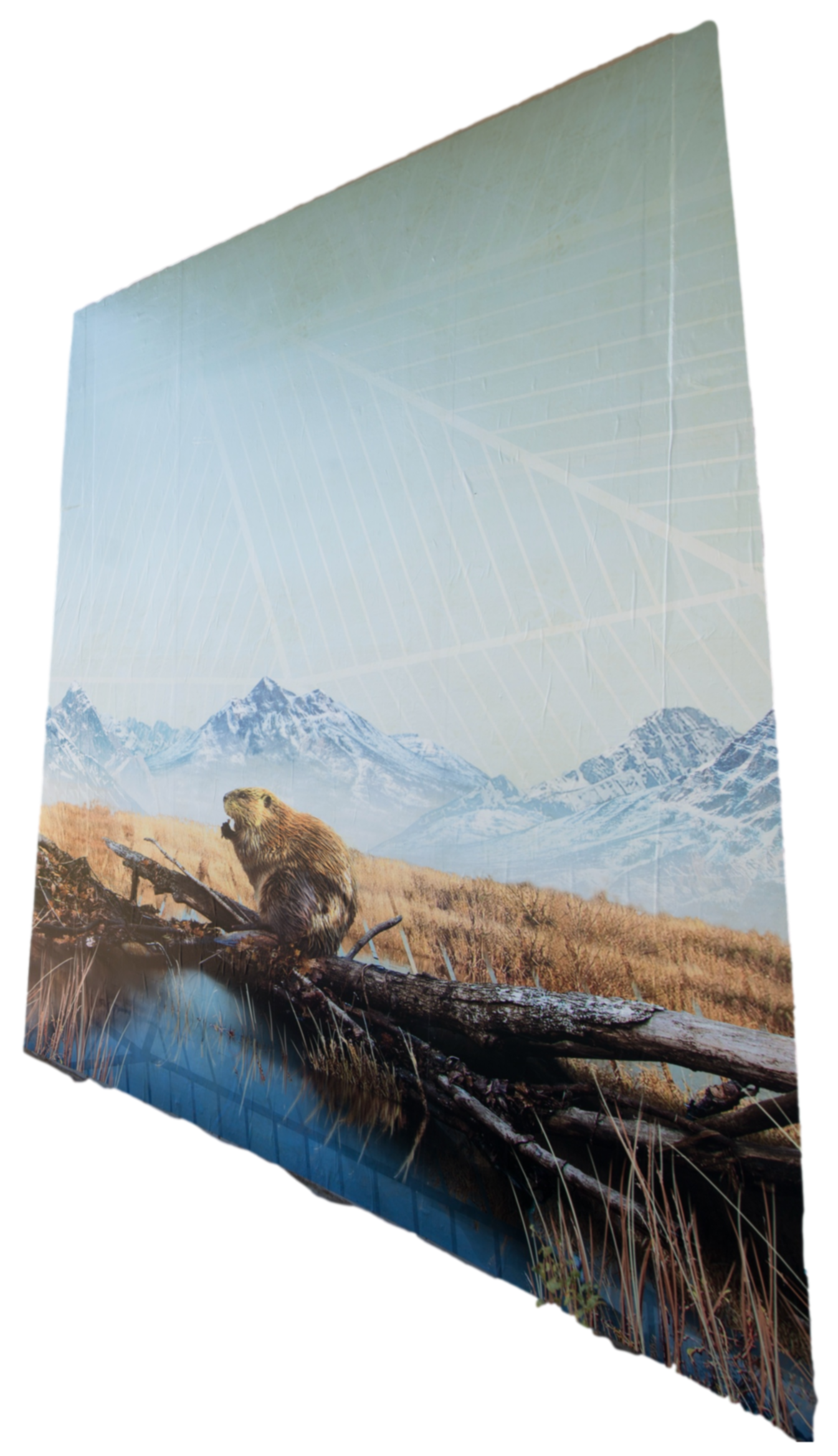 Installed along the Jack & Jean Leslie RiverWalk, Window to the Wild by then Calgary artist Curtis Van Charles Sorensen brings Alberta’s wildlife into the heart of the city. Using a mix of photography, digital collage and hand-painted detail, Sorensen’s nine-piece installation transformed everyday surfaces into vivid scenes of foxes, beavers and birds—blurring the line between urban and natural worlds. Commissioned through CMLC’s Art in the Public Realm program, the work invited Calgarians to pause, look closer, and reflect on the wild beauty that surrounds us.Mural