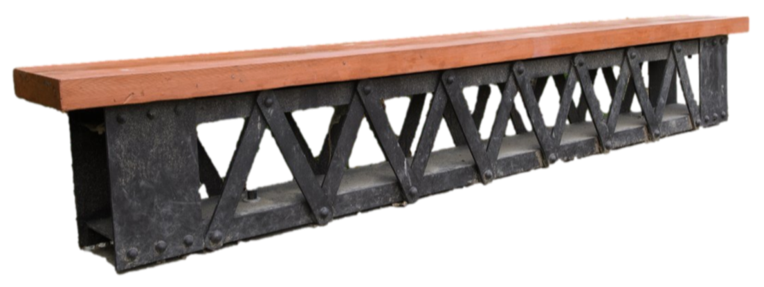Take a seat and ponder the connection between nature and humankind on this bench of a reclaimed steel truss from the Original Victoria Bridge in Saskatoon.