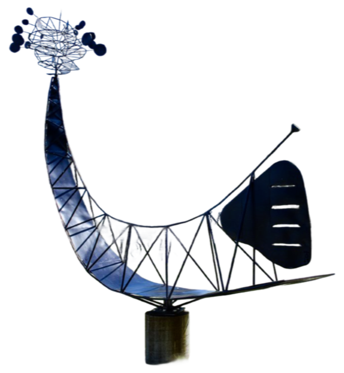 This two-part abstract sculpture by celebrated artist Katie Ohe commemorates the Nimmons family, settlers who lived and worked on this land in the 19th century.
