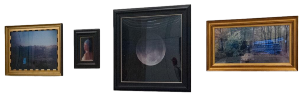Measures of Time (Canmore, Camilee, Moon, Statue in Pond)Measures of Time is composed of four lenticular photographs: images that change when viewed from different angles.Photograph