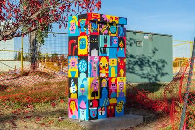This utility box displays 40-60 unique portraits created by Tyler Lemermeyer's students.