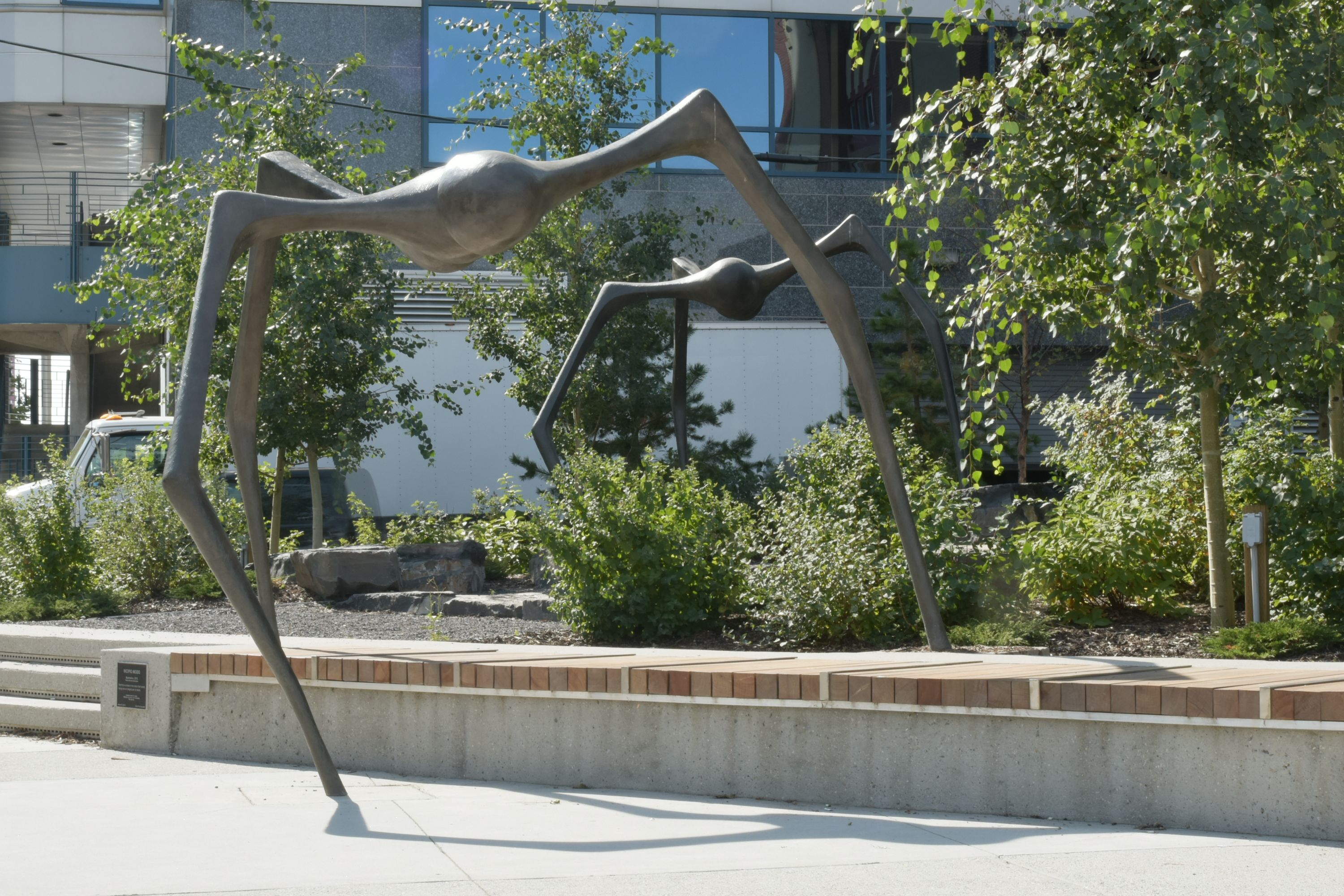 To the pedestrian they are larger than life, ascending and climbing throughout the landscape. To those in the neighbouring buildings, their form and motion define the space they inhabit. Fabricated locally, these sculptures were purposefully constructed to be modular in nature, consisting of three sections to be assembled like a tripod. This format allowed the composition of each of the insects to be determined by the terrain of the park, as the three sections were able to be adjusted and formed to respond to the site itself. Each creature is the same, yet has its own unique perspective.