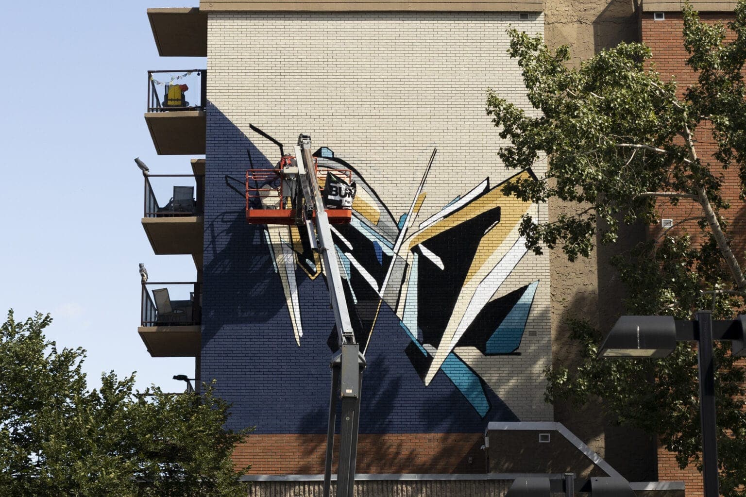 ASYL PETRA is a trans-dimensional portal intended to emit LIGHT and blessings of peace to the surrounding Beltline communities. The brown and beige tones were inspired by geological rock formations while the dynamic linework is intended to be ‘experiential’ in the sense that everybody sees something different based on their own experience. The title of the piece includes the Greek word ‘Petra’ which is defined as “stone or rock”. The towering artwork depicts a strong, formidable, unshakeable bedrock foundation of safety and security that can only be provided by the LIGHT.