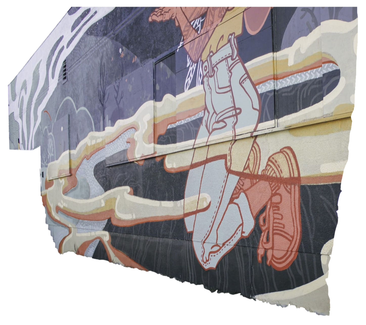 Characters, or “selves'' gaze curiously at each other and at an audience who greets them. Some appear like spirits or soul bodies peeking through lush foliage, or giants gently watching over their neighbours.