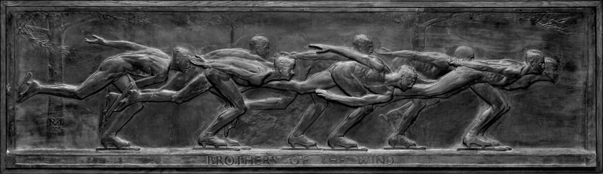 Brothers of the Wind was initially created for the Philadelphia Skating Club, to embody the spirit of competition. The work features eight speed skaters racing.