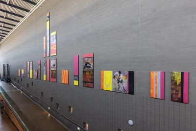 This vibrant 20 piece installation reflects on and celebrates the activities which patrons of Vivo Recreation Centre may participate in on site.