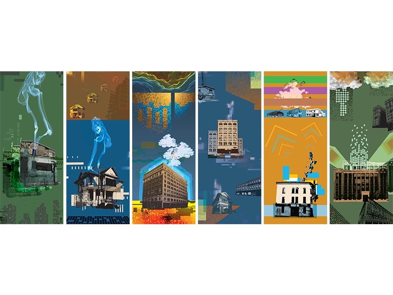 Additionally, I was committed to shedding light on less prominent structures; those no longer standing or without historical designations. My process involved photographing each building and applying formal elements like pixelation, clouds and smoke to symbolize themes of impermanence and the temporary nature of our present landscape. By doing so, I aspire to captivate the viewer’s attention and foster a renewed appreciation for these architectural gems.