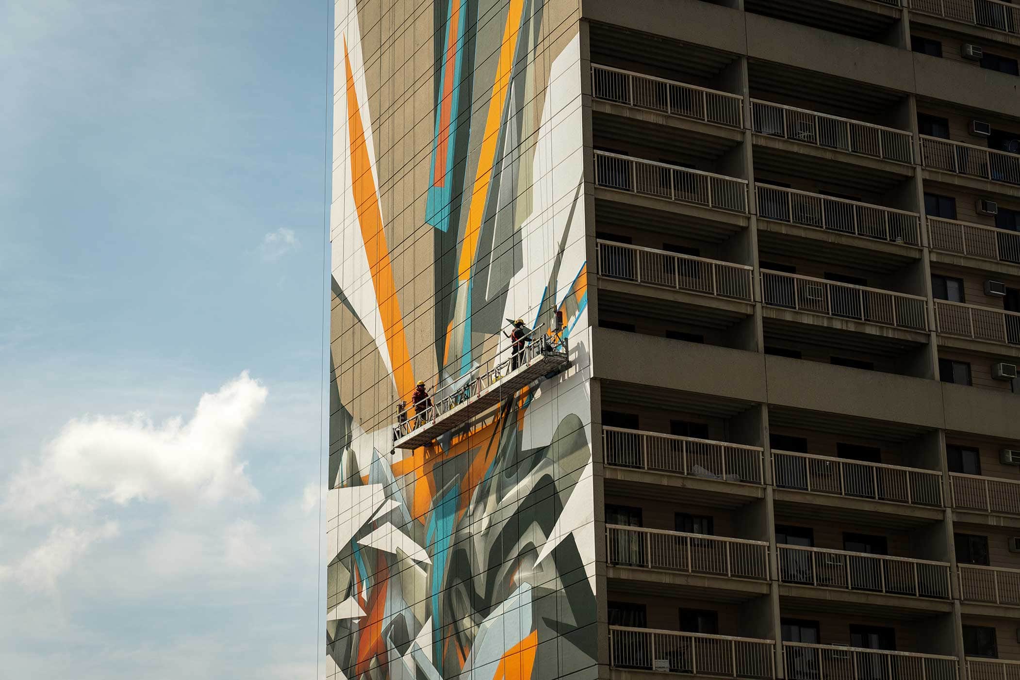 This incredible mural is officially the world's tallest painted mural. Painted by the legendary German graffiti artist Mirko Reisser (DAIM) in collaboration with BUMP the mural stands at an official height of 310-ft, 9-inches (~95 metres). The BUMP Festival is proud to have been able to bring this landmark public art piece to Calgary and facilitate a project of this scale that brought together international and local artists. This mural further transforms our city into a place where ambitious and bold art works can be formed. This extraordinary mural has been in the making for over two years and would not have been possible without our incredible collaborators at: Vertigo Solutions, Verve Projects, Hazelview Properties and of course, our festival presenting partner TD Canada.
