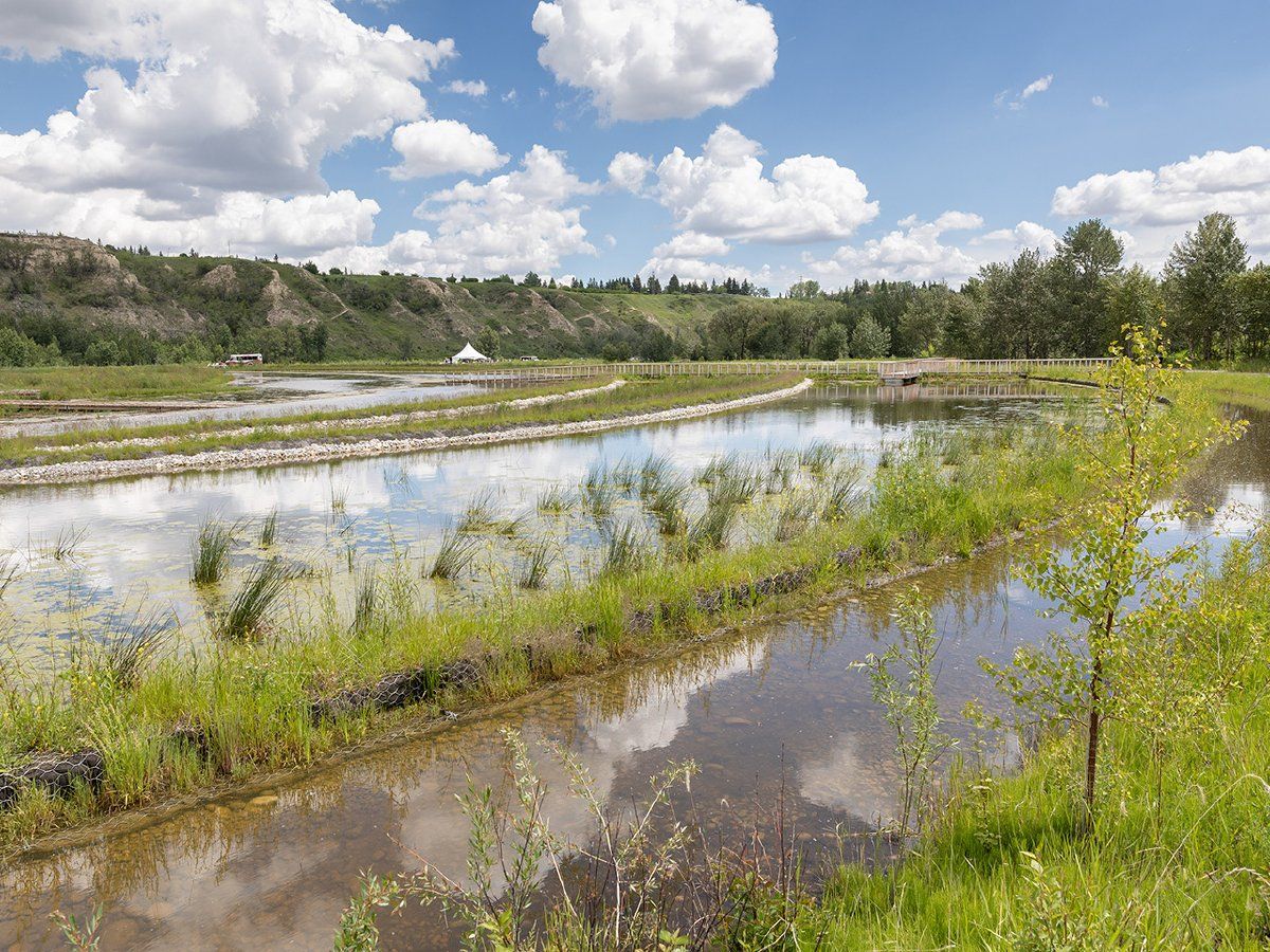Welcome to Dale Hodges Park, a 40 hectare artwork, park, and stormwater treatment facility. A former gravel pit, the land was ecologically restored while addressing the flow of untreated stormwater directly into the Bow River from 8 NW communities.