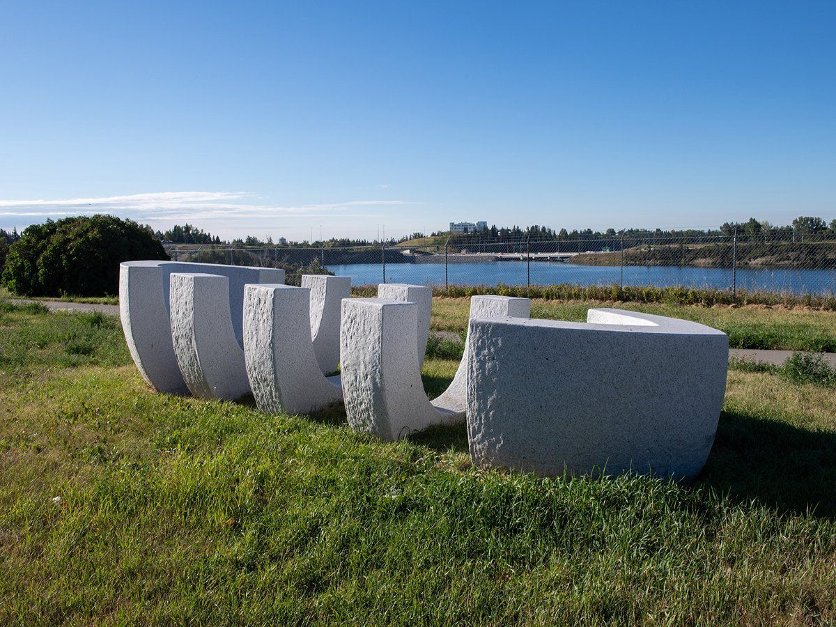 Artist Peter von Tiesenhausen was commissioned by the City's waterworks division to create a permanent sculpture celebrating 100 years of providing clean water to Calgarians. Sited on the grounds of the historic facility, the sculpture overlooks the Glenmore Reservoir, a source of Calgary's drinking water. Sculpted from the whitest granite available in the world, "Duration" is a lasting monument symbolizing water purity. It's a place for Calgarians to come and contemplate the idea of water, our place in this world and what it takes to sustain our way of life.