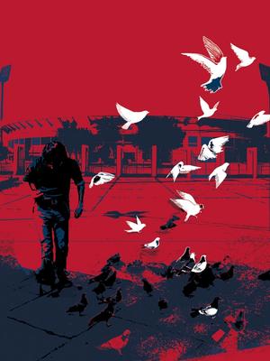 This illustration is one of eight that forms part of a larger body of work created over the span of a decade. The series is based on her father’s recorded personal account of his experiences during the 1973 Chilean military coup. Together, the works comprise screen prints, transparencies and a hand-bound book. The visual is inspired by the Chilean political graphic style that was outlawed by the Pinochet dictatorship and disappeared amid the “national forgetting” perpetuated by later democratic governments.