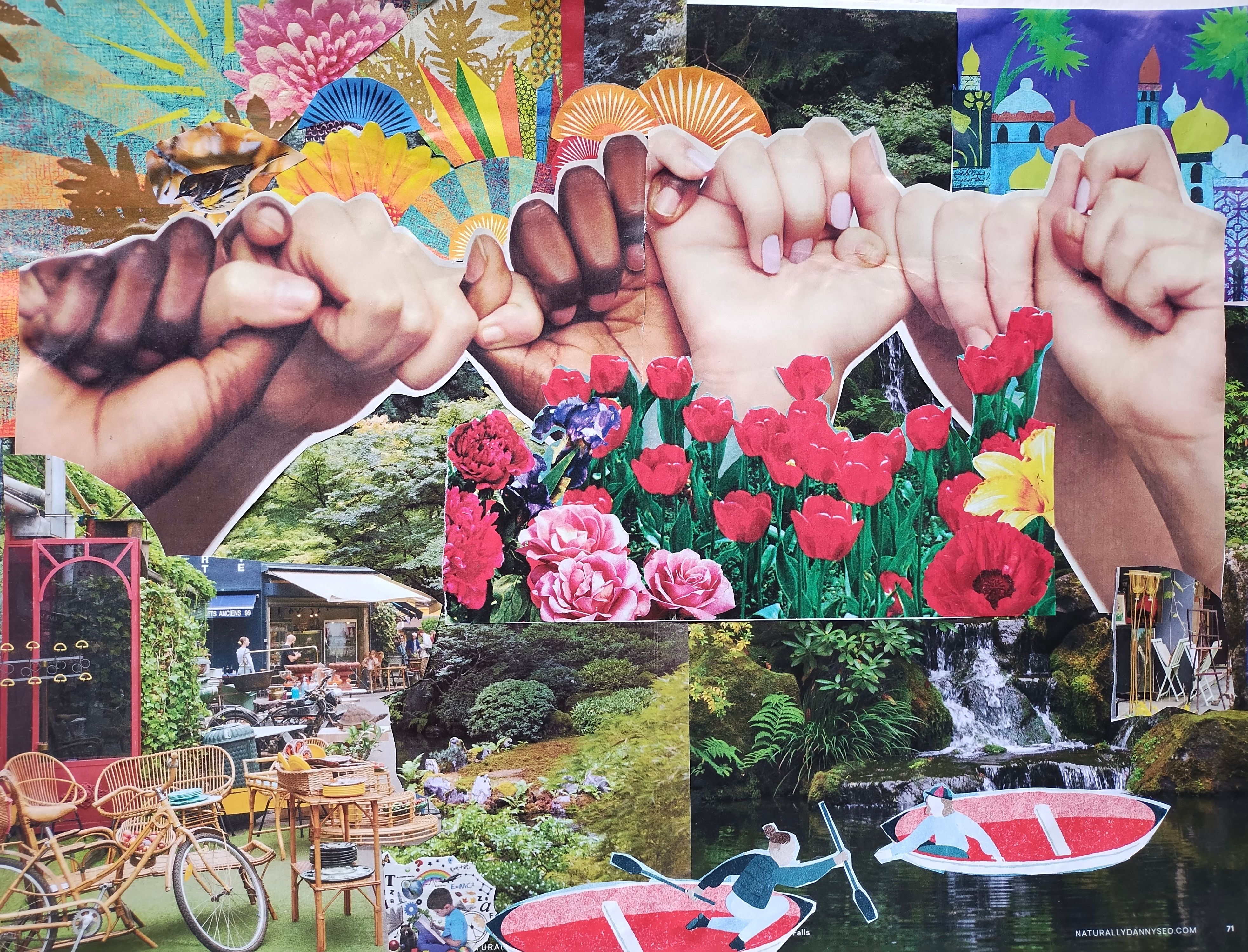Garden of Trust reflects the community spirit in Northeast Calgary. Through interlocked hands, vibrant florals and scenes of shared spaces, the artwork celebrates the values of diversity, support and mutual care that define our neighbourhoods. Each element in this piece represents the different aspects of life in our community, illustrating how we grow stronger and more vibrant together. Garden of Trust is an invitation to appreciate beauty of our collective journey and strength found in our unity.