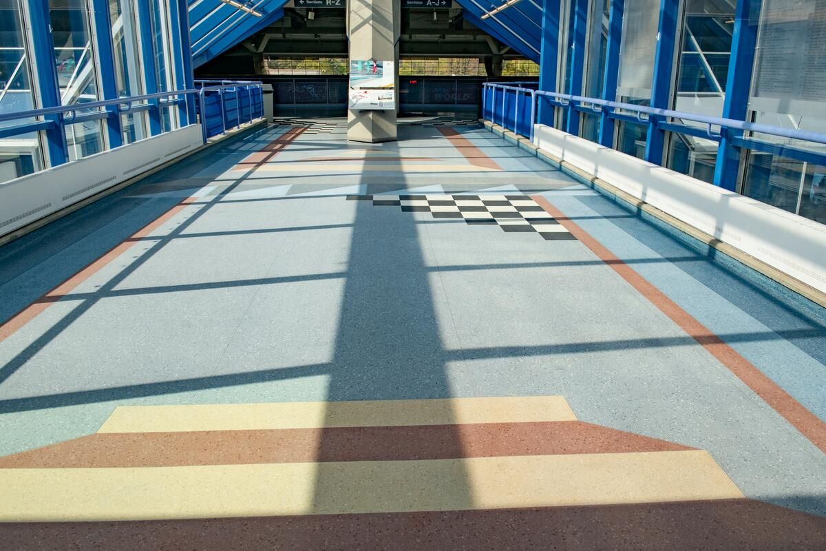 Heroic Entrance was Astman’s first public commission. This 1300 square foot linoleum floor mosaic needed to accommodate high traffic flow and maintain aesthetic appeal. It was installed in the entrance to the Olympic Oval’s 4,000 seat upper viewing deck as the building was completed.
