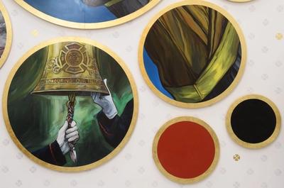 Holding Fast consists of a group of circular paintings that pays tribute to the history and values of the Calgary Fire Department.