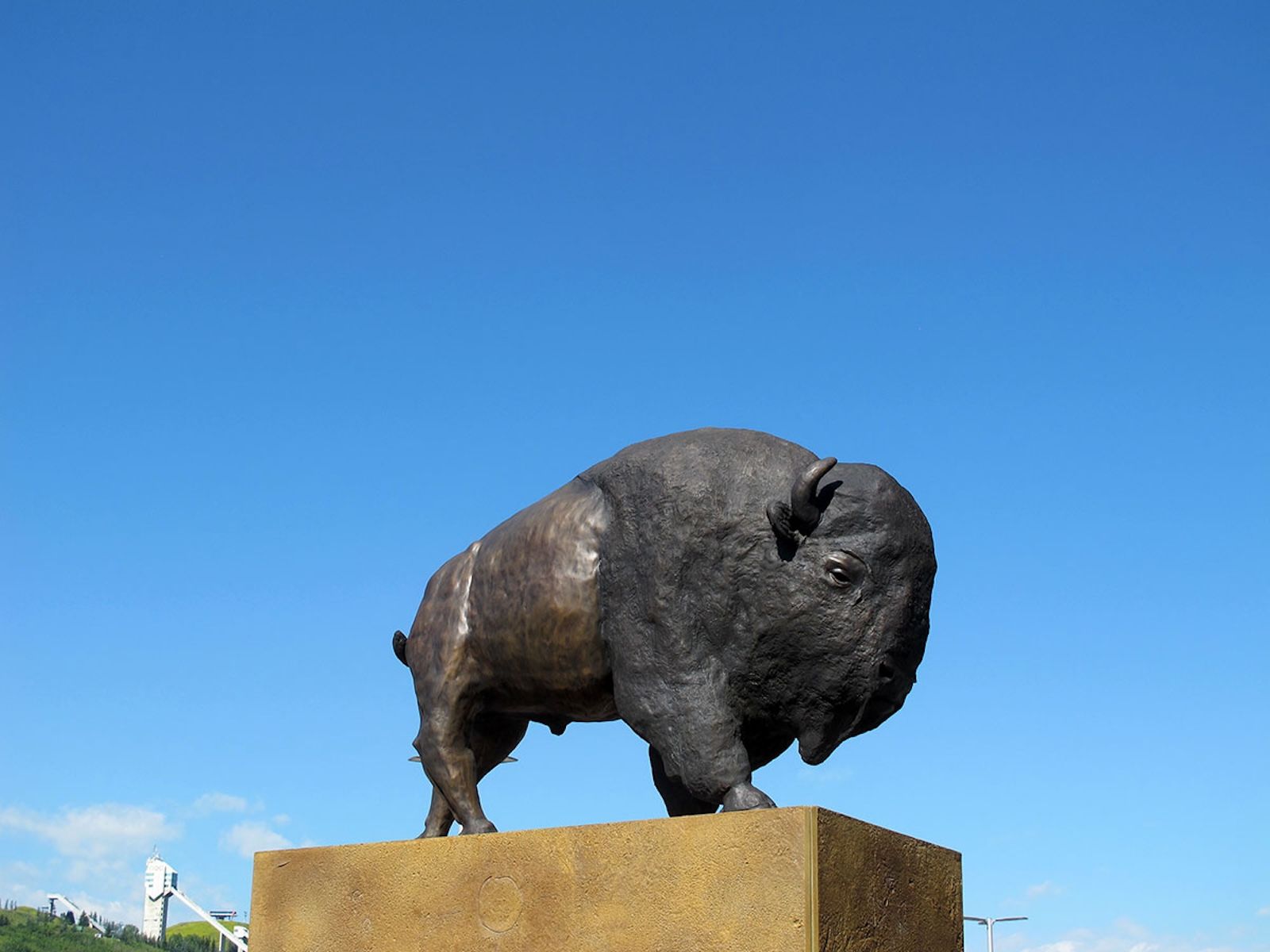 Iini Bison Heart pays homage to the Great Plains Bison, known as Iini to the Blackfoot people. The bison are central to Blackfoot culture and history; they once roamed these lands and these very hills. Blackfoot stories and modern archeology confirm that this area was once a bison kill and processing site, utilized by Indigenous tribes across time. Commissioned by Trinity Development Group, Blackfoot artist Adrian Stimson felt that the bison best represented the history of this area. Bison are resilient. The slaughter of the bison is a fact of our history; it was a deliberate and brutal attempt to destroy not only the bison but also the people who relied on them for almost everything. The great slaughter to clear the plains changed the landscape and the way of life for many Indigenous peoples. The bison were on the brink of extinction, yet they survived and are being brought back. The history of the bison is analogous to Blackfoot being, even now the bison are everything; they are the source of inspiration, imagination and life. Iini Bison Heart is a monument to the Bison. We remember their power and pay our respect for their being.