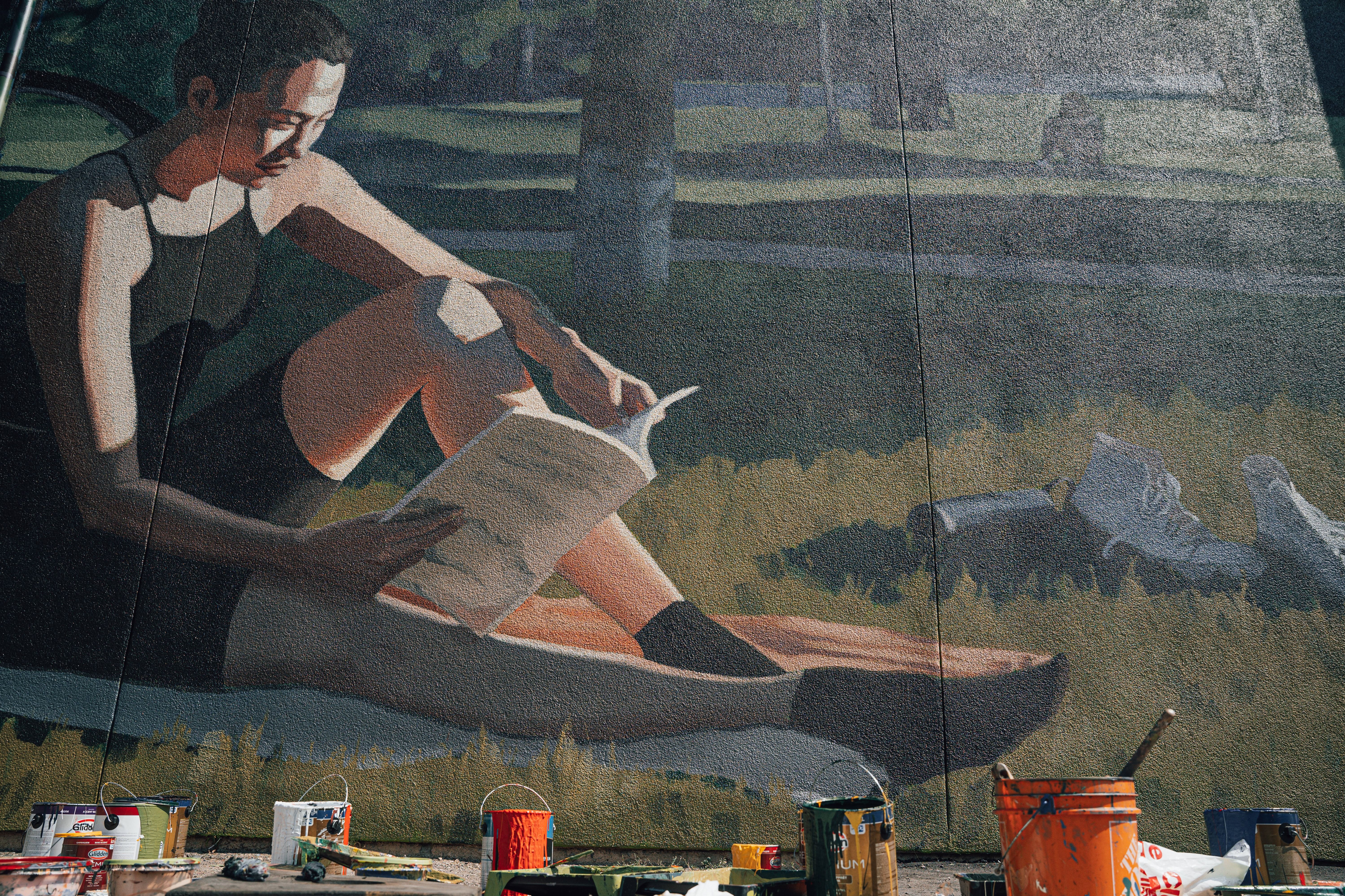 By portraying a young woman sprawled across the grass reading alongside her bike, this work romanticizes a simple moment in time, and champions the beauty of individualism.