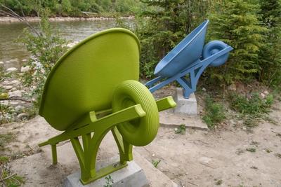 Enjoy the view of the river in these colourful and playful seats in the shape of large wheelbarrows.