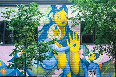The sense of belonging began to solidify again after I moved back to Canada for my family. It has been a gradual journey of awakening to the importance of home and belonging. During this journey of contemplating home, I inevitably traced back to the land where I grew up, and my ancestors, as well as the reciprocity at play between those who nurtured me and those I nurtured. This mural signifies a kind of homecoming - a remembrance of the earth and those who have given me life. It’s also a reminder to give back and continue nurturing our land and our families.