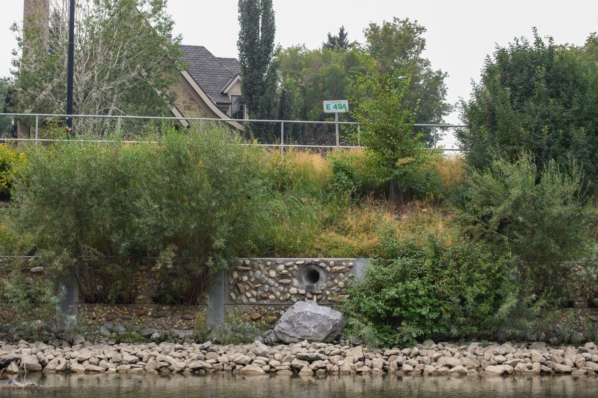 Artist Peter von Tiesenhausen worked collaboratively with engineers, entomologists, and a local concrete manufacturer to create a 100-metre long stabilizing wall along the Elbow River. Rather than create a solid concrete wall, the artist integrated cavities within the design to facilitate the natural growth of vegetation such as trees, lichen, and mosses while providing habitat for birds and insects. The artist hopes that within a few years, the manmade structure will be overtaken with natural elements so the boundary between constructed and nature disappears. 'Meander' will be a living sculpture, changing with the seasons and the animals that make it home.