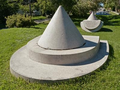 While this sculpture is a nod to the past, it is also meant to be enjoyed by current residents and visitors. Katie Ohe is known for creating interactive sculptures, and this geometric work is no different. Visitors are welcome to touch and sit upon this work, or even crawl under it if they are so inclined! The artist who created this work was born in Alberta and continues to live here today. her works can be found across the city, in many different public locations. You may recognize her famous "Zipper" sculpture, located at the University of Calgary, or "Janet's Crown", located at the Alberta College of Art and Design (ACAD). Ohe has taught at ACAD for many years, and is a respected artist and teacher who is recognized as being an early practitioner of abstract sculpture in this province.