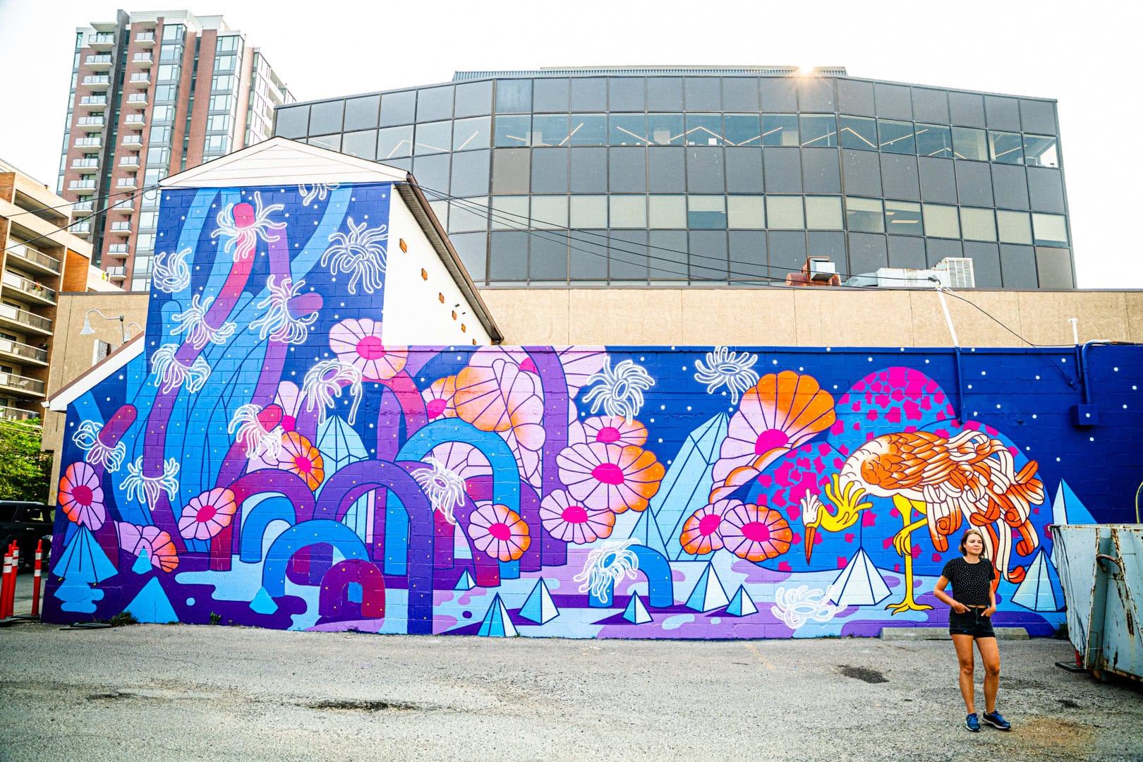 For this mural, I desire to illustrate a nocturnal landscape of a possible exoplanet. I find research absolutely fascinating and a great playground for our imaginations to flourish. The spectator is placed as an observer and immerses himself in the scene when facing it.