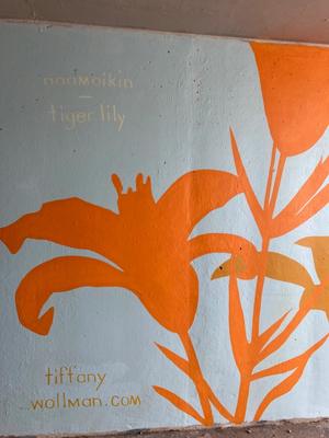 Artist Tiffany Wollman’s mural project pays tribute to the landscape and plant life of Nose Hill Park. With guidance from Blackfoot Elders Cindy Daniels and Rod Scout, Wollman painted plants and flowers meaningful to the Blackfoot people in phase one of the project, which started in 2020. The second phase, which was funded by the Community-Run Microgrant, involved adding the names of the flowers in Blackfoot and English to the mural, and adding a QR code and online component so those at the site can also see the names in each of the Treaty 7 languages.