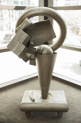 Artist Isla Burns is known for her welded steel sculptures. This work, which is made of carefully balanced three-dimensional shapes, is a good example of the artist's skill with metal.