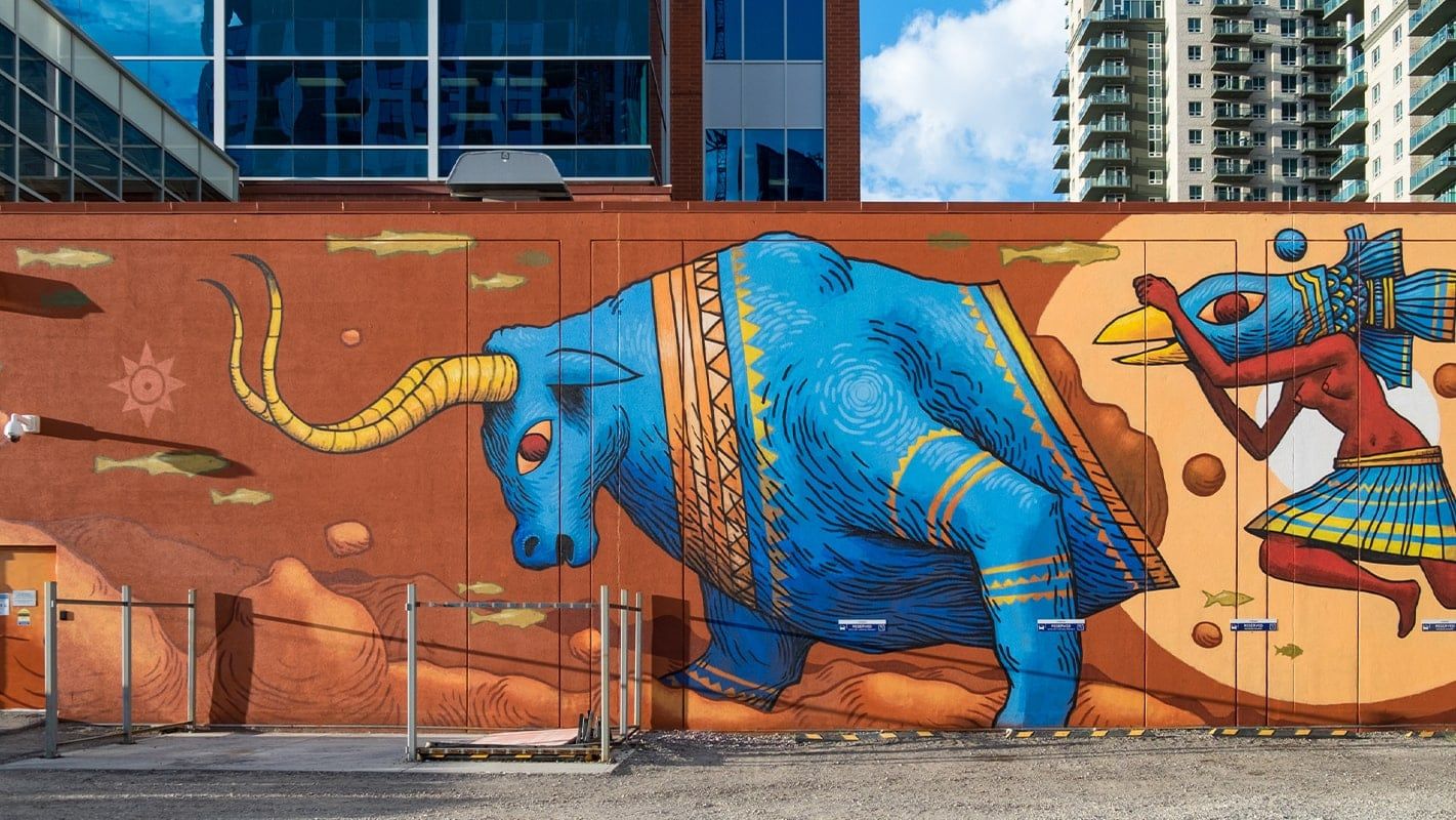 The bull is the representation of strength and fertility, with a masculine energy. But to balance this, there is a woman that since the beginning of humanity is also a representation of strength and fertility. I wanted to show that within everything, there is a unity of two “opposites” a little bit like yin and yang. There is always feminine within masculine and vice-versa. On another level, this woman is carrying a bird mask. The bird is the animal that is ruling over the sky, the air, that is the spirit. The bull and the woman have the opposite energy but are marching in the same direction. The bull also has decorative paint, like if he was going to be part of a magical ritual, maybe a sacrifice. But what is important is that this bull and this masked woman are part of the same cycle, they are unified, they are life and death, fertility and desert. They are opposite and the same.