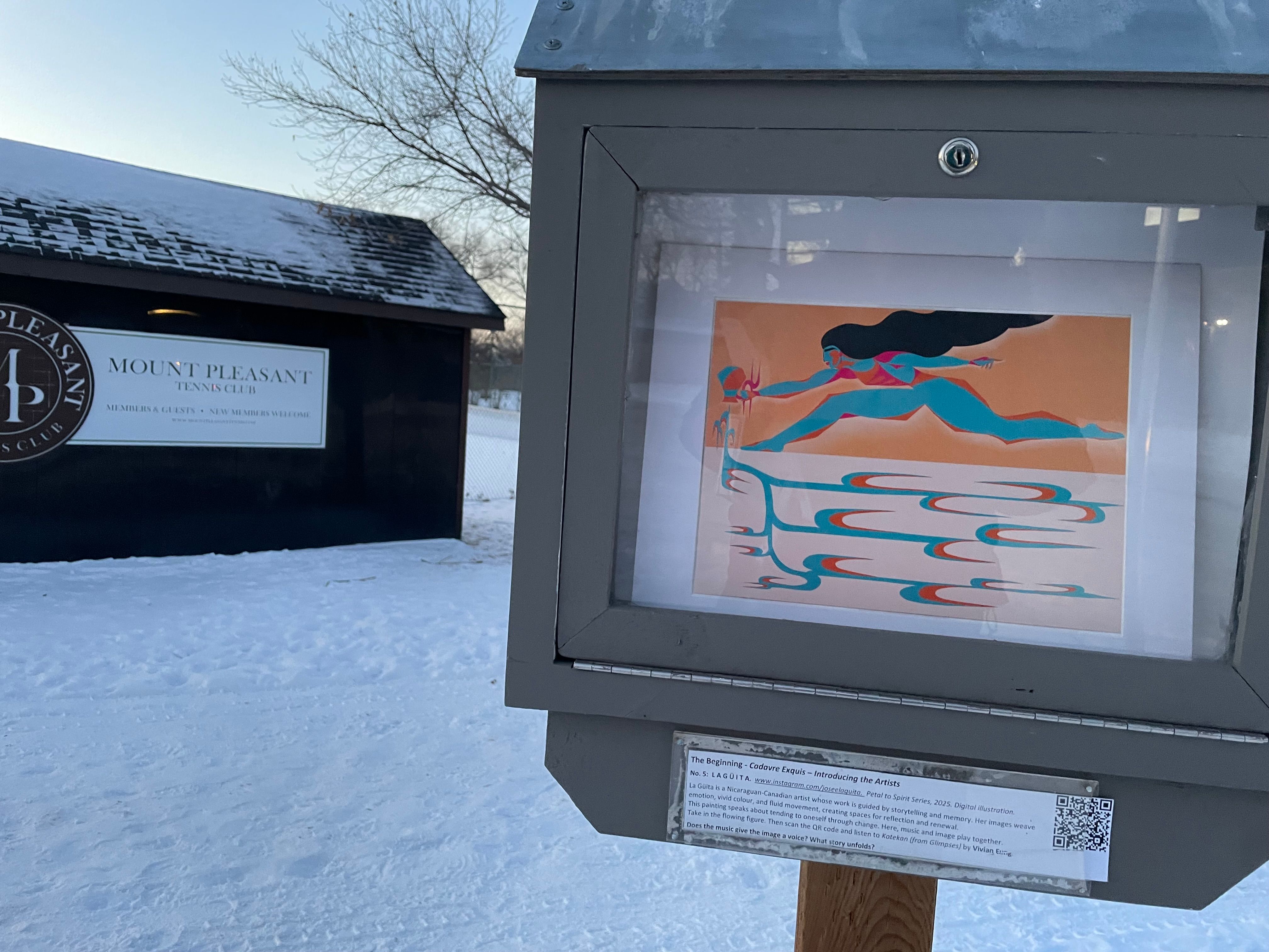 La Güita is a Nicaraguan-Canadian artist whose work is guided by storytelling and memory. Her images weave emotion, vivid colour, and fluid movement, creating spaces for reflection and renewal. This painting speaks about tending to oneself through change. Here, music and image play together. Take in the flowing figure and listen to Kotekan (from Glimpses) by Vivian Fung.